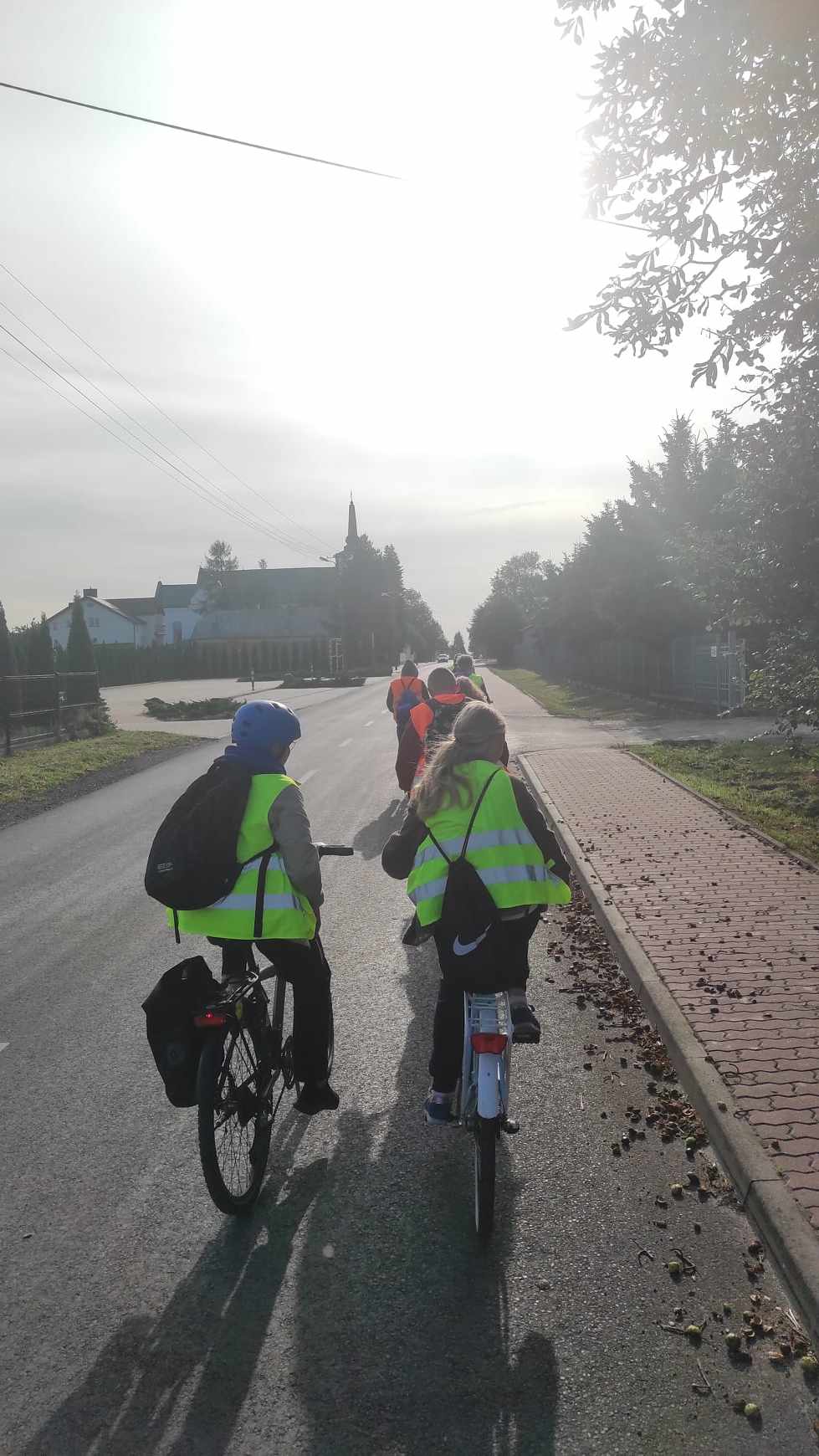 W czwartek 5 października 2023 r. całą klasą VIII z wychowawczynią Agnieszką Popkowicz, p. Natalią Strotsen i p. Piotrem Szewczykiem wybraliśmy się rowerami na wycieczkę krajoznawczą. Przed wycieczką bardzo się ekscytowaliśmy, że spędzimy miło czas, poza murami szkoły. Wyjechaliśmy około godziny 8:10, paru kolegów miało delikatne opóźnienie, lecz w Belsku byliśmy na czas. Podczas jazdy wiał bardzo silny wiatr a cały sznur rowerzystów wyglądał czasem komicznie, w końcu nie spotyka się na co dzień takiej dużej grupy rowerowej. Pierwszym punktem było zwiedzanie zabytkowego kościoła pod wezwaniem  Świętej Trójcy w Belsku Dużym. Tam dowiedzieliśmy się kto spoczywa w kościelnych piwnicach. Gdy byliśmy w kościele mogliśmy się przenieść do drugiej połowy XVIII w.  Proboszcz parafii opowiedział nam o bardzo ciekawiej historii kościoła.