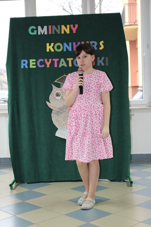 Do konkursu przystąpiło 43 uczestników. Odważni, pewni siebie recytatorzy stanęli na wysokości zadania. Uczestnicy przygotowali deklamację dwóch wierszy polskich poetów. Oceniani byli za dobór utworów, kulturę słowa, interpretację i ogólny wyraz artystyczny.