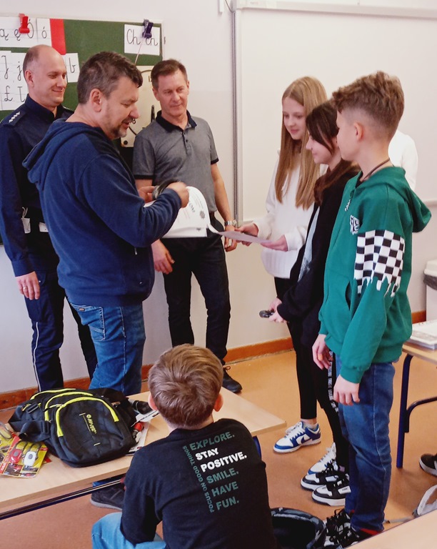 Uczniowie naszej szkoły brali udział w dniu 16 kwietnia 2024 r. w eliminacjach powiatowych XLV Ogólnopolskiego Turnieju Bezpieczeństwa w Ruchu Drogowym powiatu grójeckiego, które rozegrano w Szkole Podstawowej w Wilkowie. Celem Turnieju są działania na rzecz poprawy stanu bezpieczeństwa w ruchu drogowym, w tym bezpieczeństwa dzieci i młodzieży szkolnej. Konkurs merytorycznie przygotowali i przeprowadziła Szkoła Podstawowa w Wilkowie, pan Tomasz Augusiewicz oraz przedstawiciel Komendy Powiatowej Policji w Grójcu i przedstawiciele Ochotniczej Straży Pożarnej. Do eliminacji powiatowych przystąpiło 7 drużyn w dwóch kategoriach wiekowych. W trakcie konkursu zostały przeprowadzone testy skrzyżowań, pierwsza pomoc, tor przeszkód (slalom, żmijka, tarka, zegar i kwadrat).