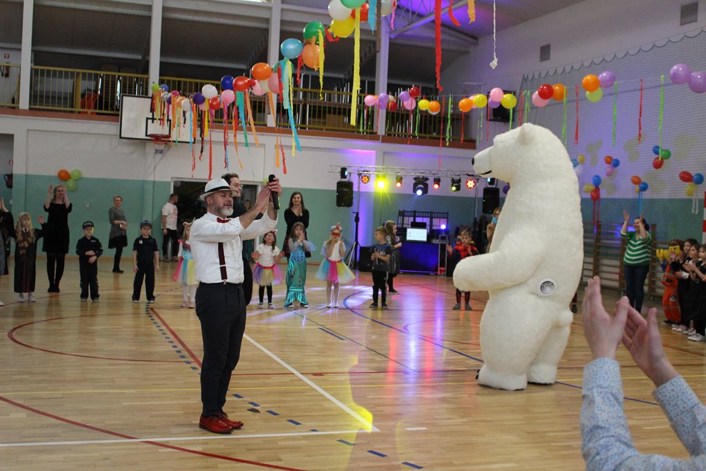 W piątek 12 stycznia 2024 r. w pięknie udekorowanej sali gimnastycznej odbyła się zabawa choinkowa dla wszystkich uczniów naszej Szkoły. O oprawę muzyczną zadbał DJ, dodatkową atrakcją dla wszystkich najmłodszych miłośników choinkowej zabawy był niedźwiedź polarny.