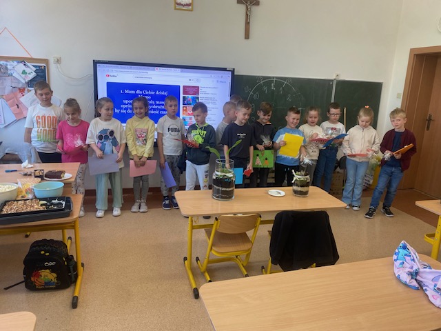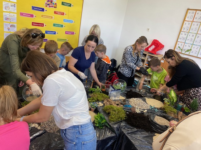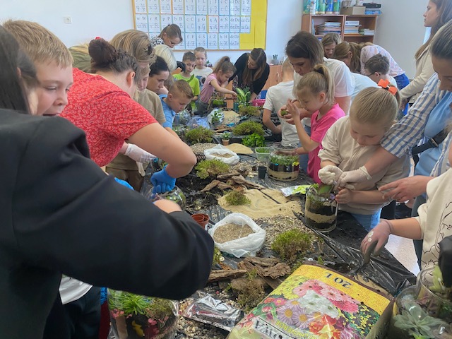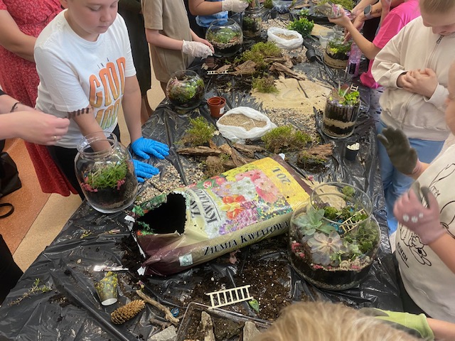 26 maja odbyły się warsztaty z okazji Dnia Mamy, podczas których uczniowie wraz ze swoimi mamami mieli okazję stworzyć własne miniaturowe lasy w słoikach. Celem zajęć było rozwijanie kreatywności, zdolności manualnych oraz wyrażanie uczuć wobec mam.