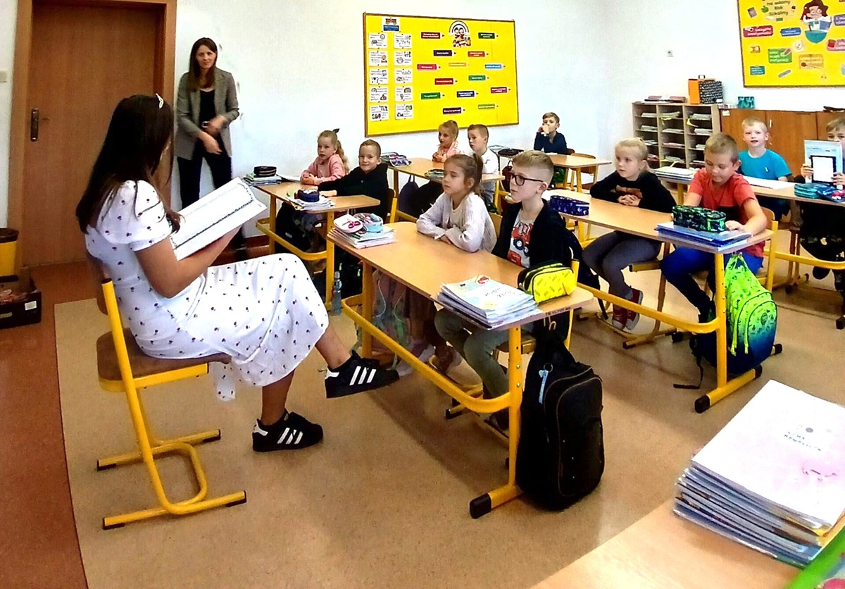 Pracownicy świetlicy szkolnej i biblioteki promują czytelnictwo poprzez akcję głośnego czytania zarówno szkolnych lektur, jak i innych książek.