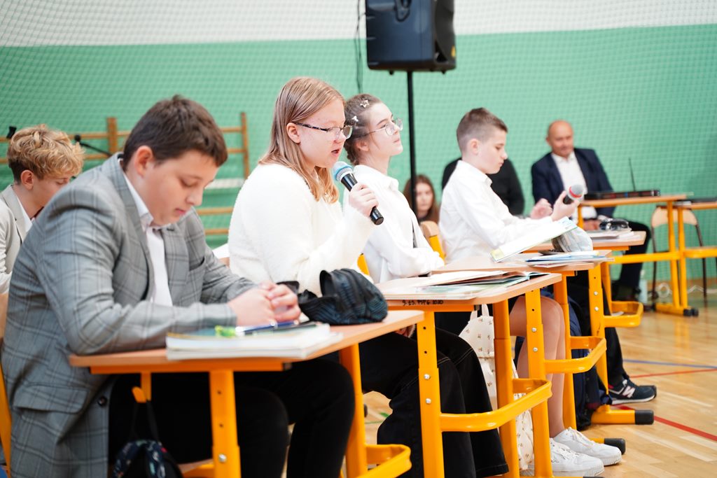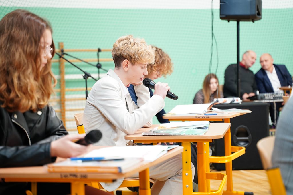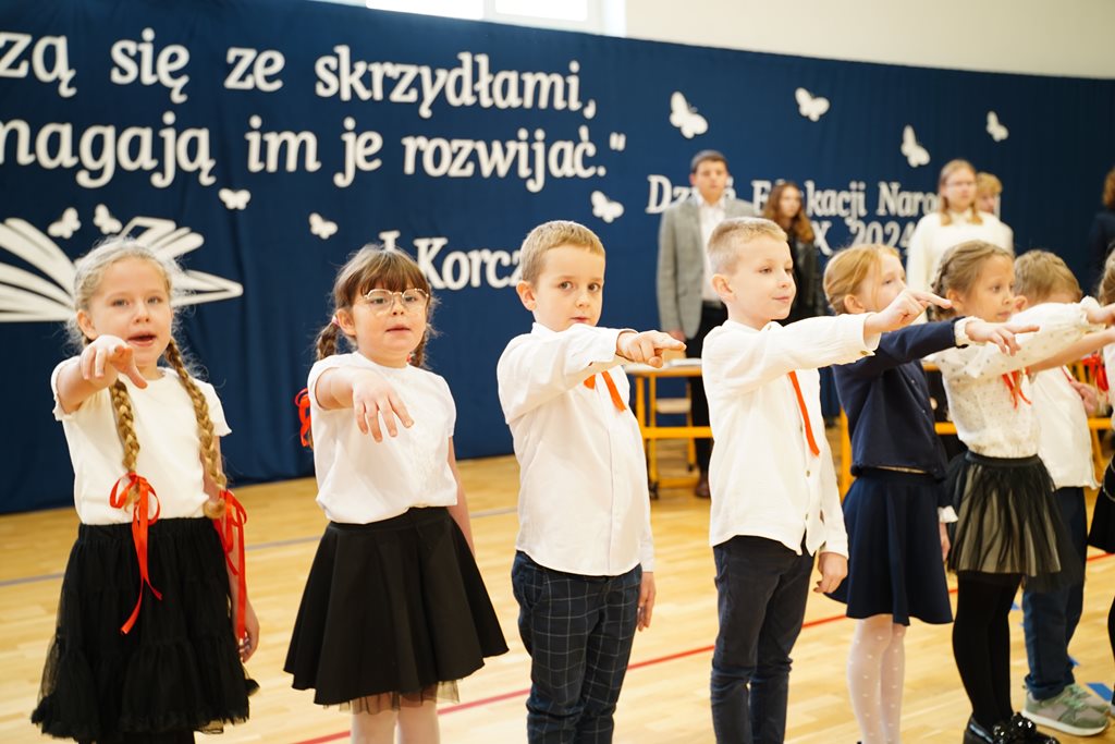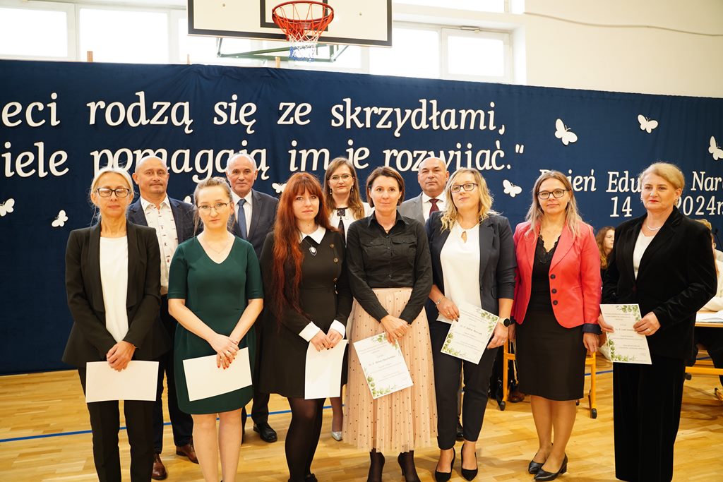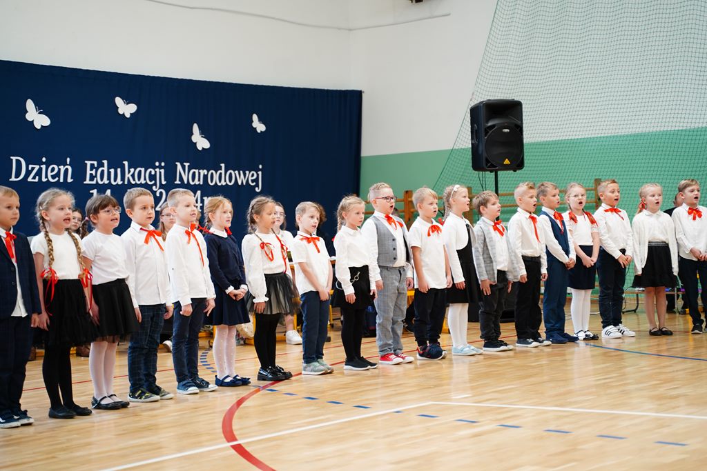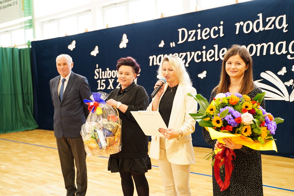 Następnie odbyła się krótka część artystyczna z okazji Dnia Edukacji Narodowej, przygotowana przez starszych kolegów i koleżanki oraz Samorząd Uczniowski. Nie zabrakło także pięknych życzeń dla nauczycieli z okazji ich święta. Był to wyjątkowy dzień pełen wzruszeń i radości, który na długo pozostanie w pamięci wszystkich uczestników.