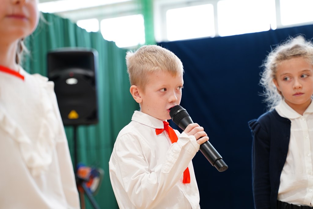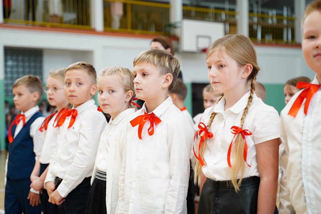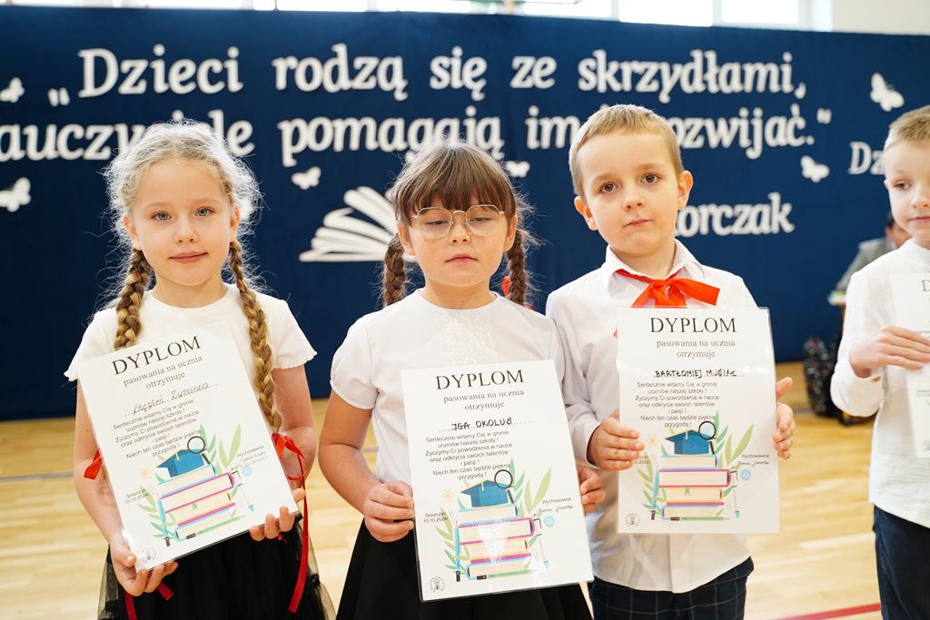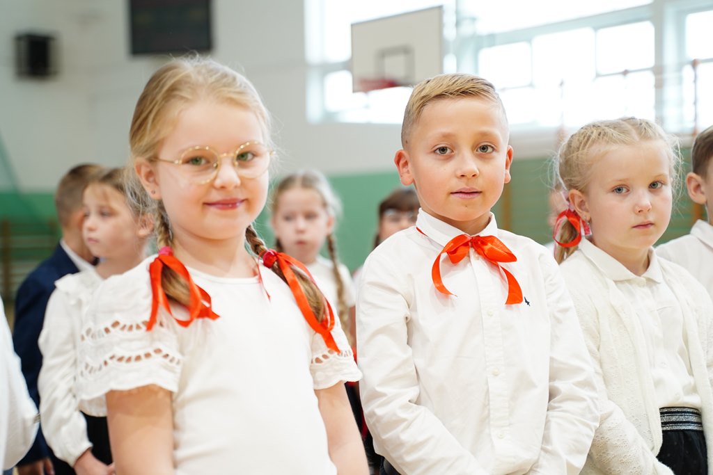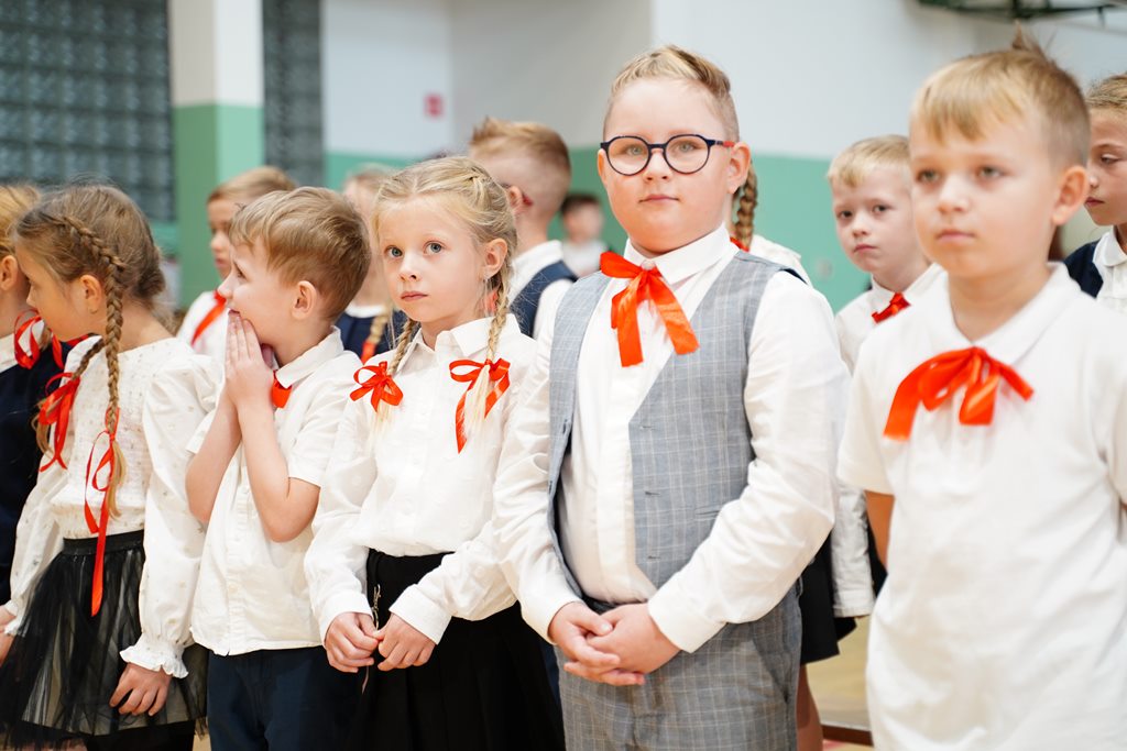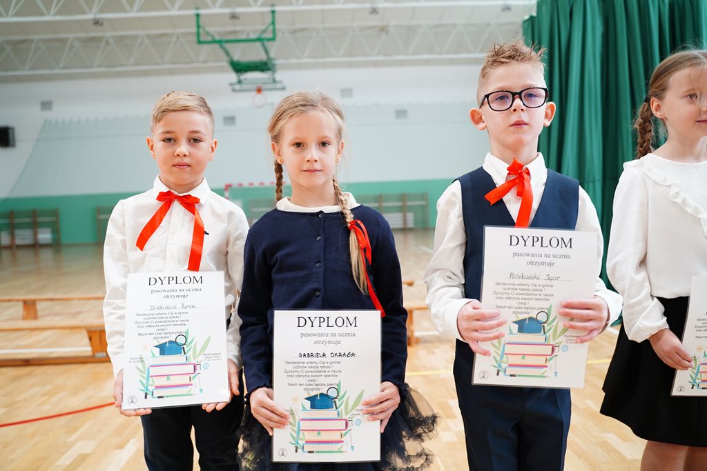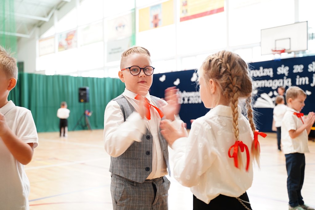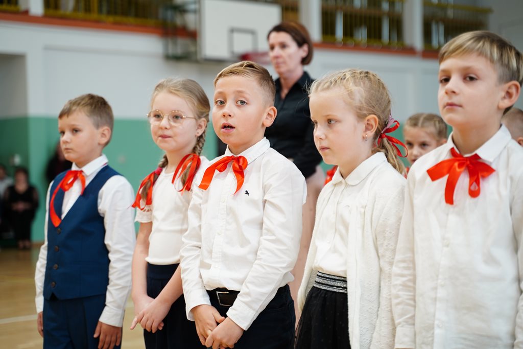 W dniu 15 października 2024 r. w naszej szkole odbyła się uroczystość ślubowania uczniów klas pierwszych połączona z uroczystym apelem z okazji Dnia Edukacji Narodowej. W wydarzeniu uczestniczyli uczniowie, nauczyciele oraz rodzice. Uroczystość rozpoczęła się od wprowadzenia sztandaru szkoły i odśpiewania hymnu państwowego. Nowi uczniowie złożyli uroczyste ślubowanie, w którym zobowiązali się być pilnymi i sumiennymi uczniami, szanować swoich nauczycieli oraz godnie reprezentować szkołę. Po ślubowaniu nastąpił moment pasowania na uczniów, które przeprowadził pan dyrektor, dotykając symbolicznie każde dziecko dużym ołówkiem. Część artystyczna była niezwykle barwna i radosna. Dzieci śpiewały piosenki, recytowały wiersze oraz zaprezentowały taniec, który wzbudził entuzjazm wśród zgromadzonej publiczności. Wychowawcy wręczyli uczniom pamiątkowe dyplomy.