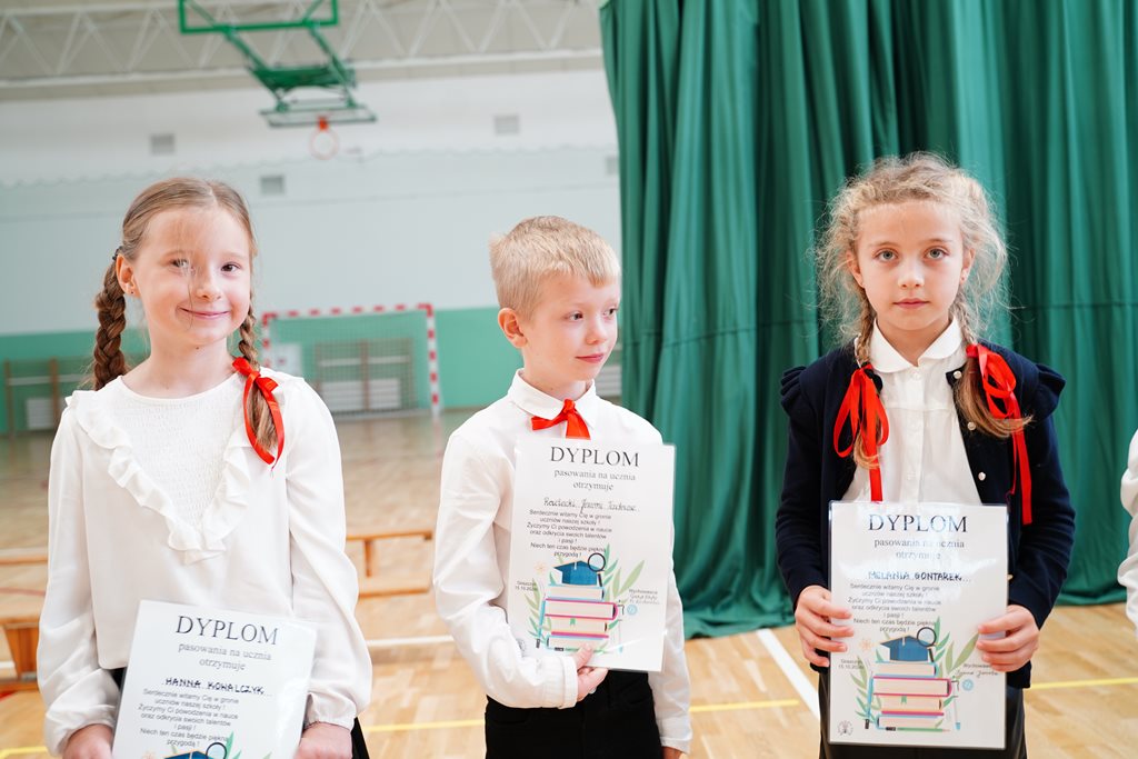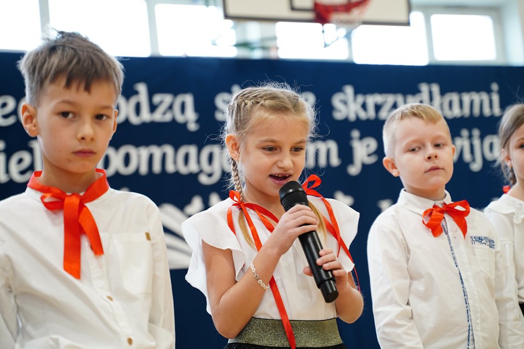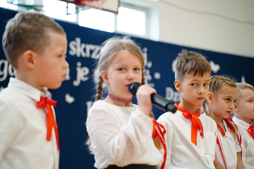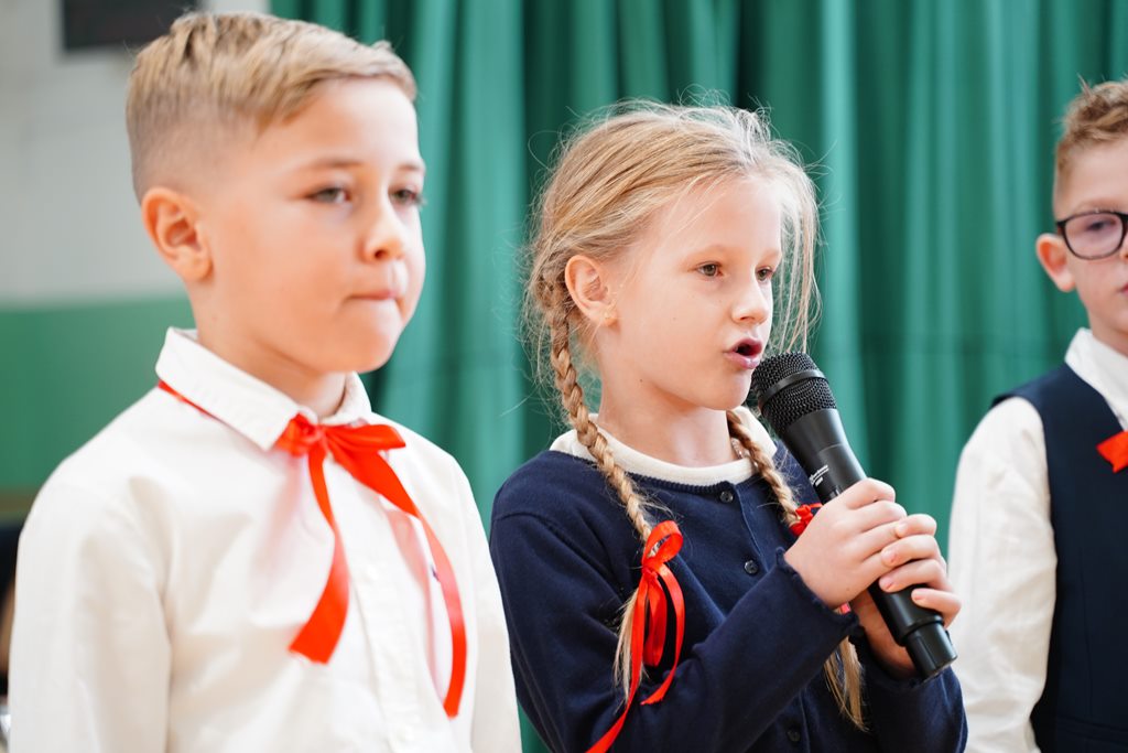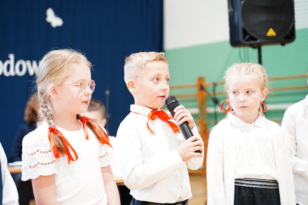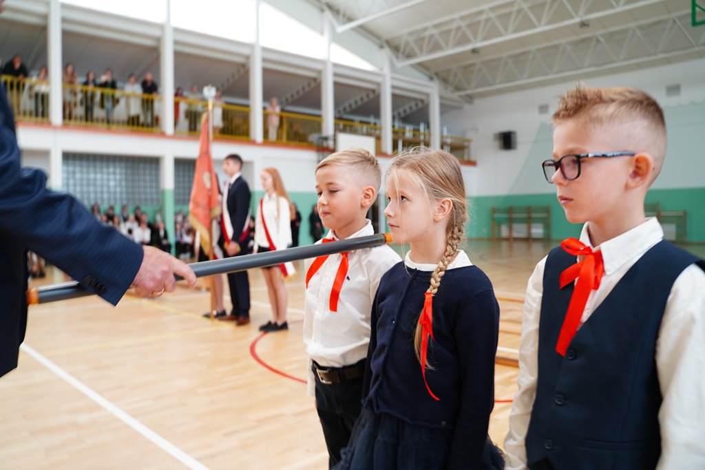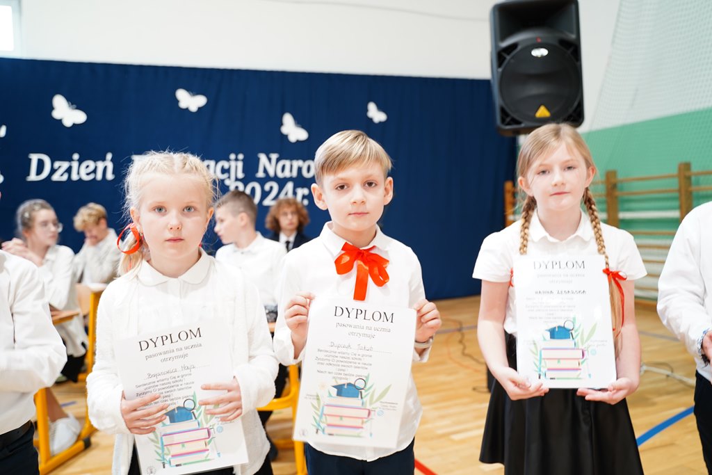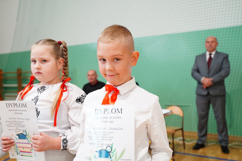 W dniu 15 października 2024 r. w naszej szkole odbyła się uroczystość ślubowania uczniów klas pierwszych połączona z uroczystym apelem z okazji Dnia Edukacji Narodowej. W wydarzeniu uczestniczyli uczniowie, nauczyciele oraz rodzice. Uroczystość rozpoczęła się od wprowadzenia sztandaru szkoły i odśpiewania hymnu państwowego. Nowi uczniowie złożyli uroczyste ślubowanie, w którym zobowiązali się być pilnymi i sumiennymi uczniami, szanować swoich nauczycieli oraz godnie reprezentować szkołę. Po ślubowaniu nastąpił moment pasowania na uczniów, które przeprowadził pan dyrektor, dotykając symbolicznie każde dziecko dużym ołówkiem. Część artystyczna była niezwykle barwna i radosna. Dzieci śpiewały piosenki, recytowały wiersze oraz zaprezentowały taniec, który wzbudził entuzjazm wśród zgromadzonej publiczności. Wychowawcy wręczyli uczniom pamiątkowe dyplomy.