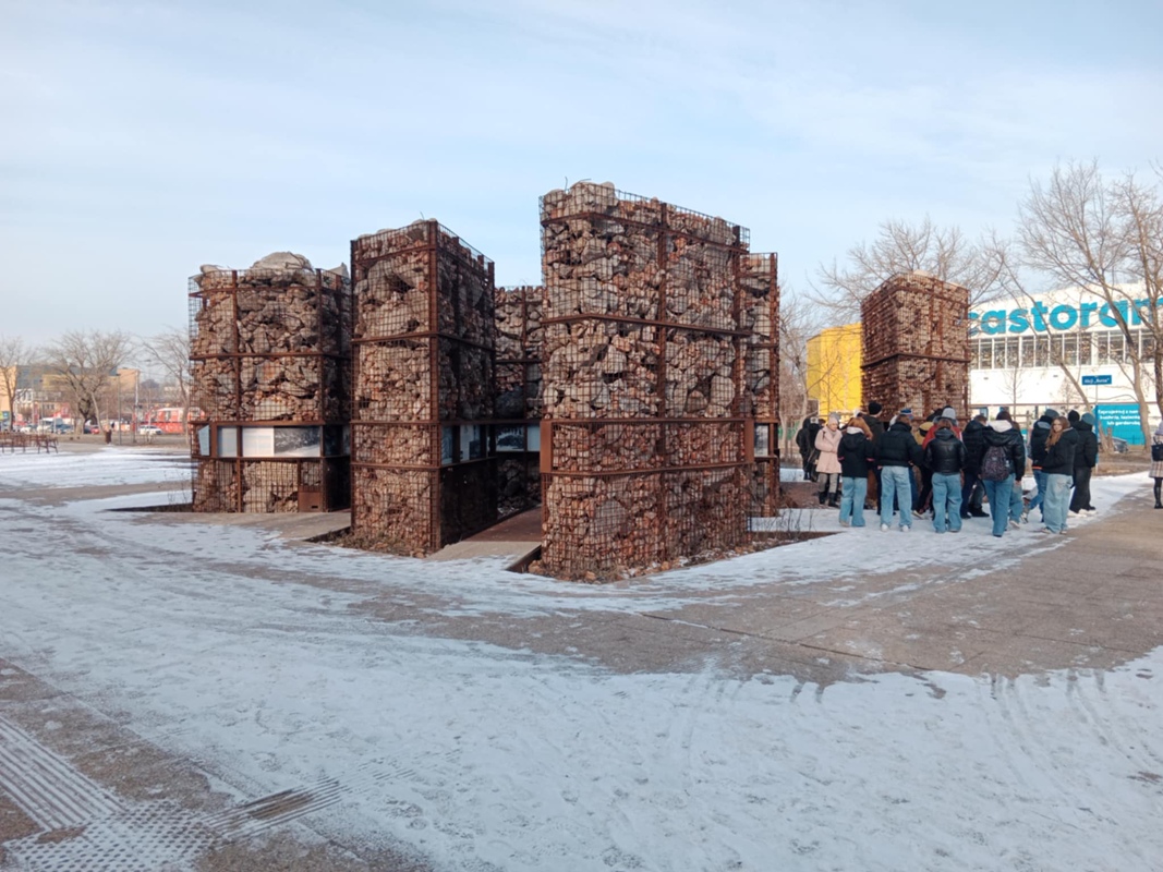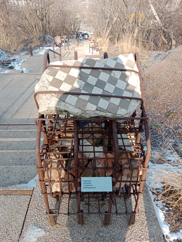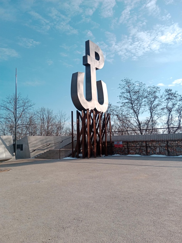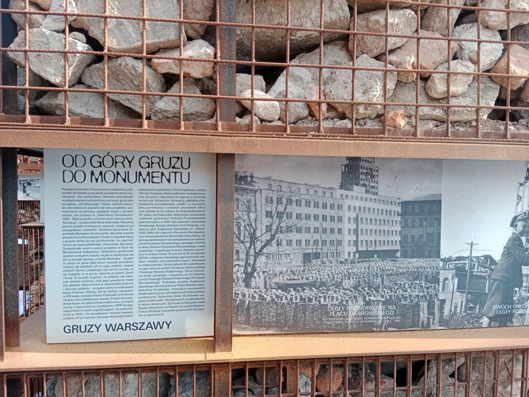 Pierwszym punktem wyjazdu był Kopiec Powstania Warszawskiego – wzniesienie znajdujące się na Czerniakowie, w całości stworzone z gruzów powojennej Warszawy. Wkoło kopca znajduje się park Akcji „Burza”. Przed schodami są usytuowane ogromne „kosze” z warszawskimi gruzami, w sposób symboliczny ukazujące wymiar zniszczenia stolicy w czasie wojny. Na samej górze został postawiony pomnik Polski Walczącej, przy którym są składane kwiaty, zapalane znicze, a także rokrocznie 1 sierpnia odbywają się tam obchody patriotyczne związane z wybuchem Powstania Warszawskiego. O genezie kopca opowiadał nam szczegółowo uczeń klasy 8b, Łukasz Kępka.