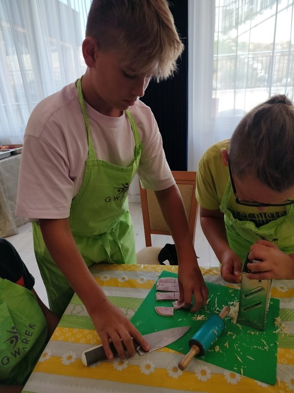 Gdy nadszedł upragniony przez wszystkich dzień wyjazdu, uczestnicy punktualnie przybyli na miejsce zbiórki, by wyruszyć w podróż do Krainy Wielkich Jezior. Po przybyciu na miejsce uczniowie udali się na obiad, a następnie podzieleni na grupy uczestniczyli w zajęciach przygotowanych na ten dzień. Klasa 8b uczestniczyła w zajęciach survivalowych. Podczas zajęć uczyli się podstaw przetrwania w terenie: budowa szałasu, rozpalania ogniska za pomocą krzemieni. W tym czasie klasa 8a uczestniczyła w warsztatach kulinarnych, zaś najmłodsza grupa w warsztatach DIY – zrób to sam, podczas których wykonali przepiękne obrazki z kolorowych sznurków i gwoździków. Na koniec dnia zaplanowane zostało ognisko z pieczeniem kiełbasek.