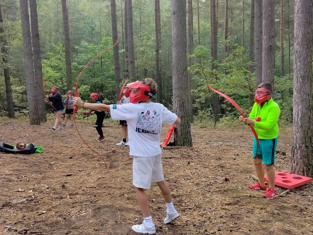 Dzień drugi rozpoczęliśmy pysznym śniadaniem, po czym grupami udaliśmy się na warsztaty i zabawy terenowe przygotowane na ten dzień: Archery Tag, czyli walki Łuczników, to połączenie gry paintball z dwoma ogniami, Flagi – głównym celem gry jest zdobycie flag przeciwnej drużyny i dostarczenie ich na swój teren. O godzinie 19.30 odwiedziliśmy Twierdzę Boyen – uczniowie brali udział w grze terenowej „ Tajemnica płk. Busse”.