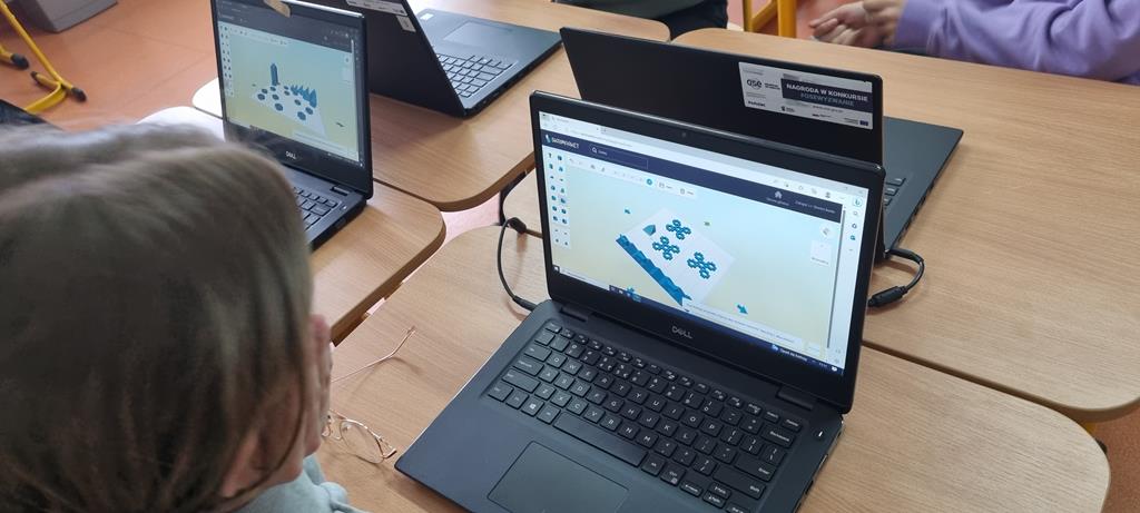 Uczniowie klasy 6b spróbowali stworzyć kompozycje wiosenne w 3D Playground i wiosenne tańce z użyciem robotów SkriBot i Robobloq oraz kwiatki z klocków SkriKit.