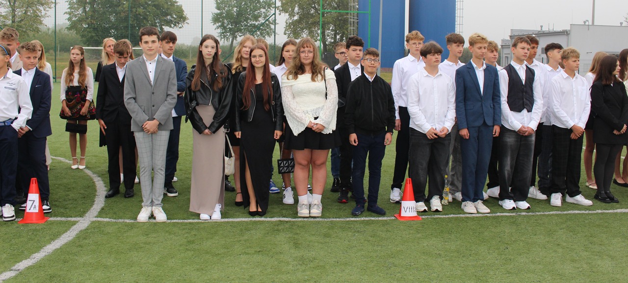 Po mszy, o godzinie 8:45, uczniowie, rodzice, nauczyciele oraz zaproszeni goście zgromadzili się na stadionie szkolnym, gdzie odbyła się część oficjalna uroczystości. Pan Dyrektor serdecznie powitał wszystkich obecnych, życząc uczniom wielu sukcesów, wytrwałości oraz radości z nauki. Głos zabrał również Sekretarz Gminy Goszczyn, który w imieniu władz samorządowych przekazał życzenia pomyślnego roku szkolnego, pełnego inspirujących doświadczeń i dobrej współpracy.
