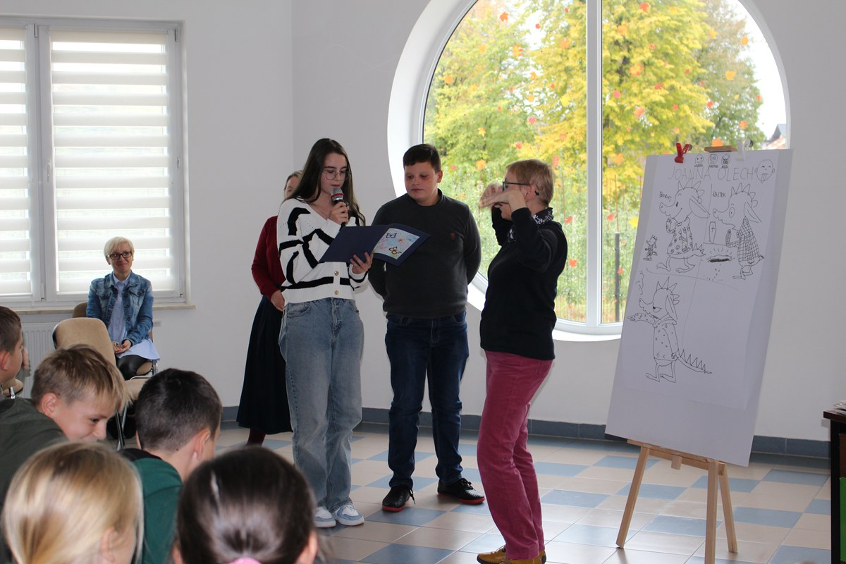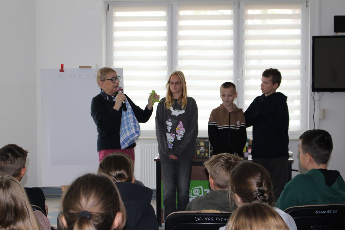 Joanna Olech opowiedziała uczniom o okolicznościach powstania tego utworu, ale także zaprezentowała inne swoje dzieła, w tym najnowszą książkę “Ziomek”. Zachęciła również młodzież do wymyślania zabawnych historyjek o trzech smokach, co pozwoliło młodym ludziom poznać, czym jest wysiłek twórczy, uzmysłowiło, co to znaczy być pisarzem i kto może nim zostać.