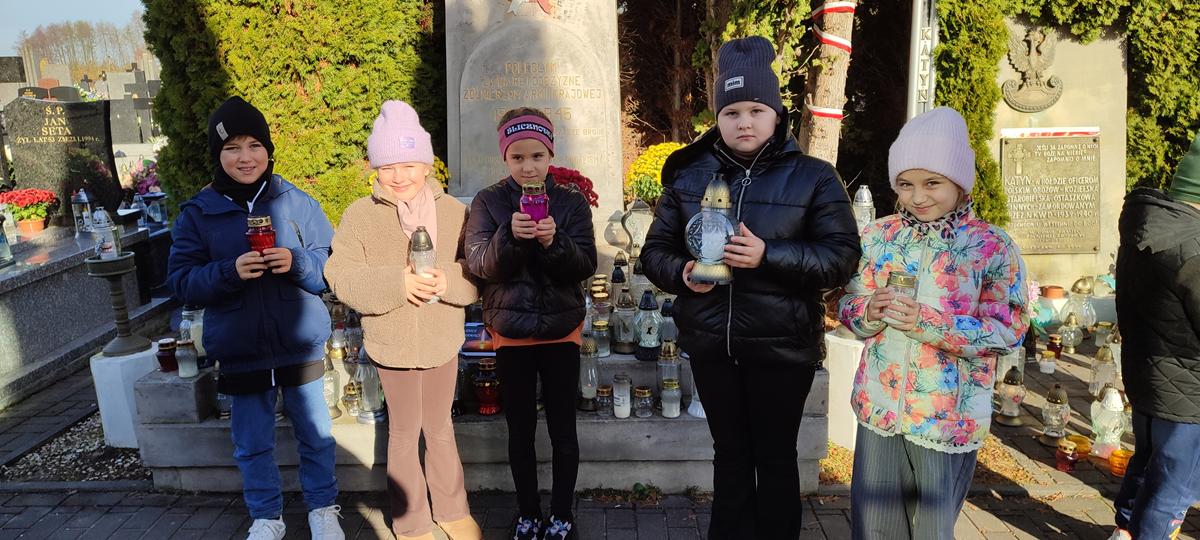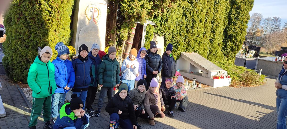 Pod opieką nauczycieli uczniowie udali się na pobliski cmentarz, aby zapalić znicze na grobach żołnierzy poległych w obronie Ojczyzny. Spacer wśród cmentarnych alejek stał się dla dzieci okazją do refleksji nad znaczeniem słów „pamięć” i „wdzięczność”.