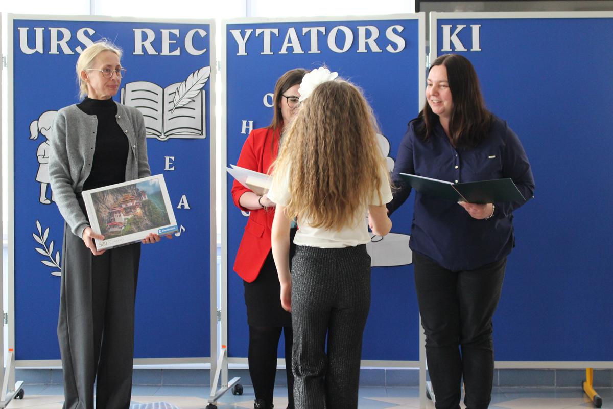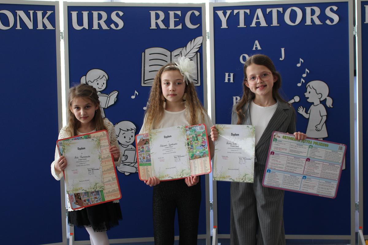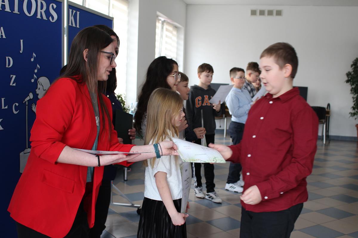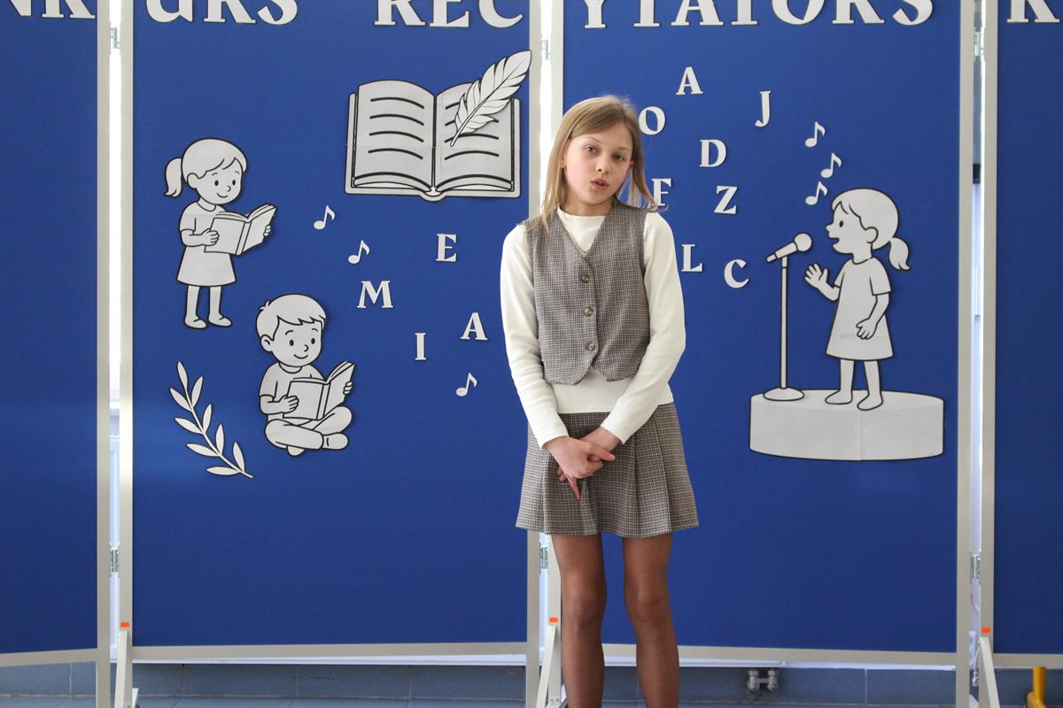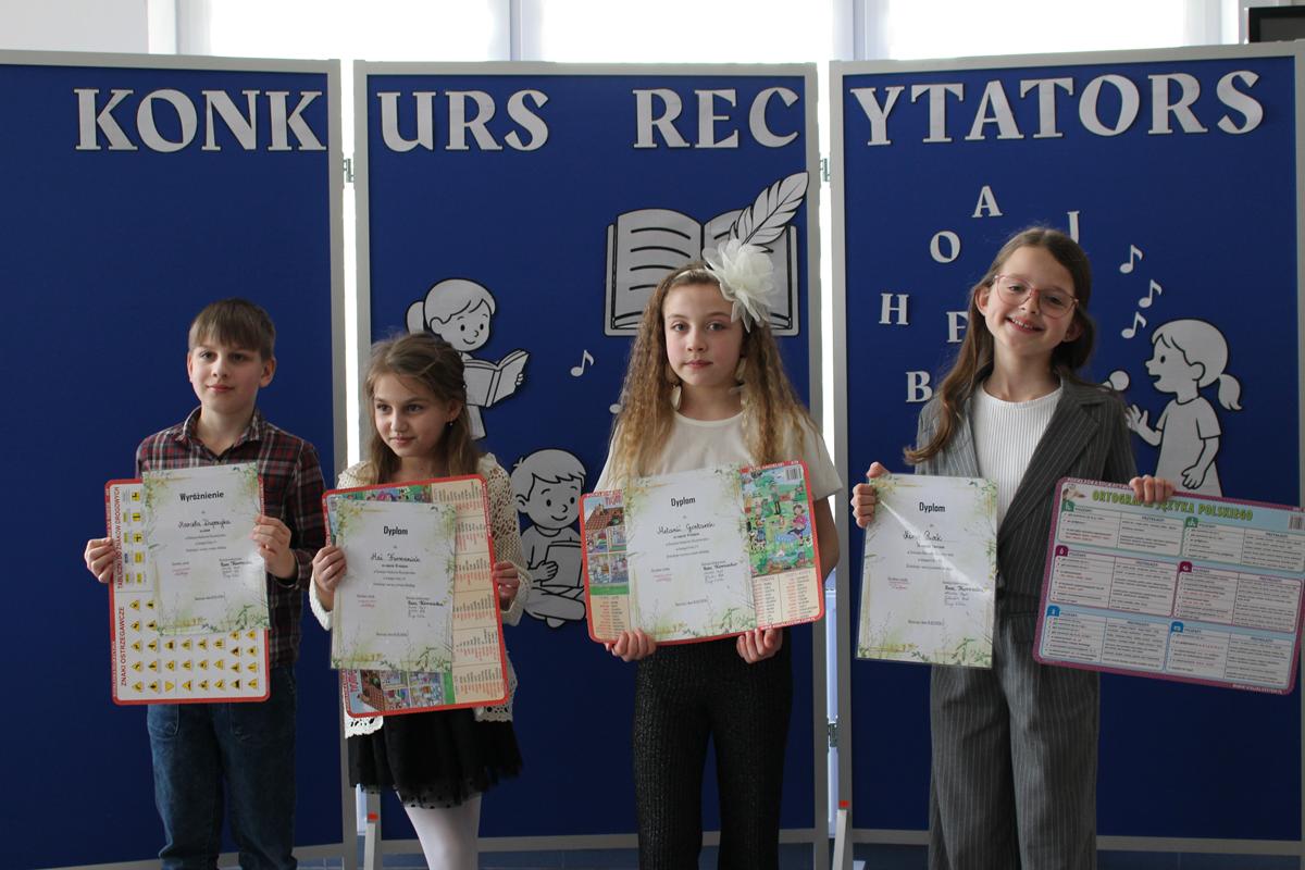 Prezentacje wybranych tekstów poetyckich podzielono na dwie kategorie wiekowe. W pierwszej grupie wystąpiły dzieci z klas 1-4, zaś w drugiej młodzież z klas 5-8. Zwycięzcą w kategorii klas 1-4 została Nina Pucek z kl. 4b, II miejsce zdobyła Melania Gontarek z kl.2b, a III otrzymała Maja Furmaniak z kl. 2a. Przyznano również wyróżnienie dla Marcela Dupczyka z kl. 3a.