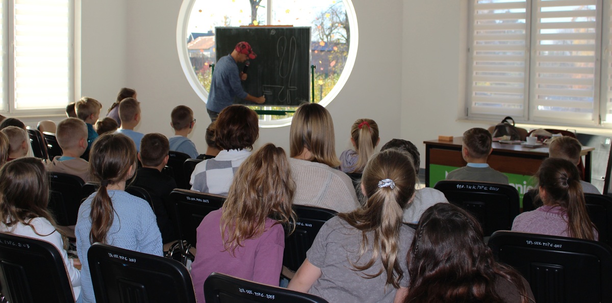 Dnia 4 listopada 2025 roku w naszej szkole odbyło się spotkanie autorskie z panem Przemysławem Wechterowiczem – znanym i lubianym autorem książek dla dzieci, m.in. „Proszę mnie przytulić”, „Uśmiech dla żabki” czy „Być jak tygrys”. W spotkaniu wzięli udział uczniowie klas pierwszych i drugich wraz z wychowawcami.