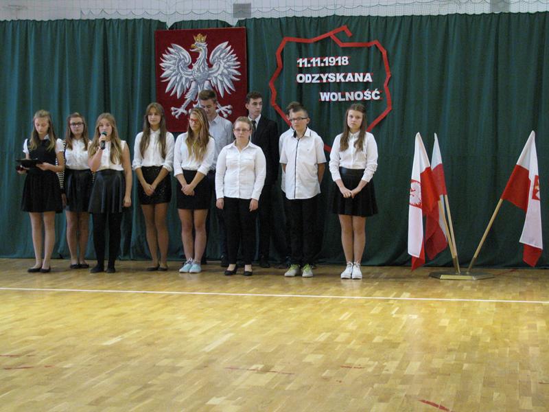 Zebrani złożyli hołd wszystkim, którzy przed laty przelewali krew, byśmy mogli żyć w wolnym, niepodległym kraju. Uczniowie klasy II gimnazjum i chór szkolny zaprezentowali program artystyczny, w którym przypomnieli najważniejsze, zwrotne momenty w dziejach narodu polskiego kroczącego ku wolności i niepodległości. Pieśni i teksty skłaniały słuchaczy  do zadumy nad minionymi wydarzeniami i refleksji na temat tego, co dziś znaczy dla Polaka słowo wolność, niepodległość.