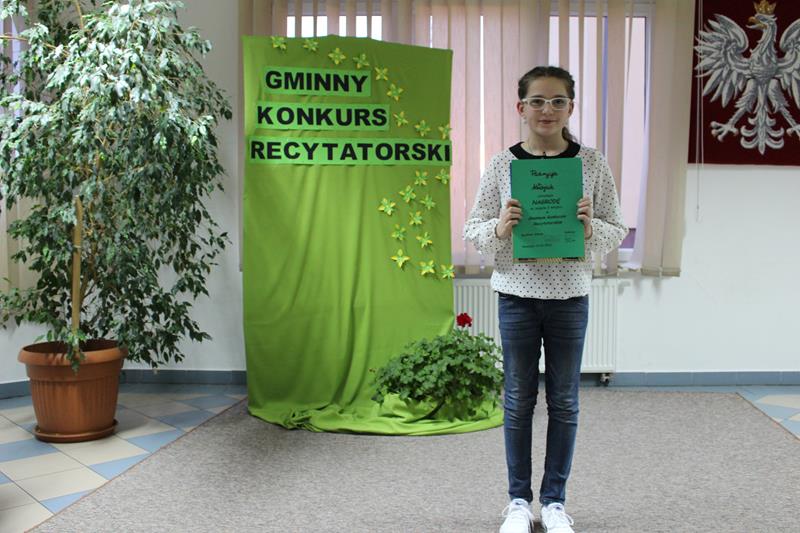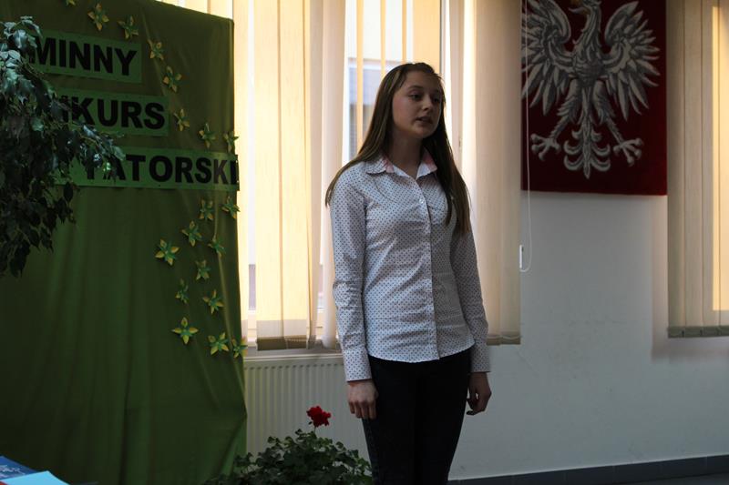 Dnia 12.03.2015 r. w naszej szkole odbył się Gminny Konkurs Recytatorski. W tym roku wzięło w nim udział 33 młodych wykonawców z Zespołu Szkół Publicznych w Goszczynie i Publicznej Szkoły podstawowej w Bądkowie. W niecodziennych, szkolnych zmaganiach uczniom dopingowali Dyrektorzy szkół Pani Agnieszka Socha i Pan Mariusz Wangryn oraz członkowie rodzin młodych recytatorów. Nad prawidłowym przebiegiem konkursu czuwało jury w składzie: Pani Anna Fatek, Pani Katarzyna Kowalczyk, Pani Marta Gałkowaka oraz Pani Marta Osińska. Jury wyłoniło zwycięzców w czterech kategoriach wiekowych. Całą imprezę uświetniła obecność zgromadzonej na sali widowni. Rodzice, ciocie, koledzy i koleżanki mieli tego dnia niepowtarzalną okazję posłuchać interpretacji utworów poetyckich w wykonaniu uczniów. Występy bardzo się podobały, co potwierdzały częste i gromkie brawa słuchaczy.