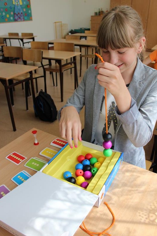 Przez 5 dni w ostatnim tygodniu maja br. odbywał się konkurs „Nawlekaj nie czekaj”, w którym wzięło udział ponad 50 osób ze szkoły podstawowej. Tylko jednemu uczestnikowi konkursu nie drżały ręce podczas układania kulek … Tylko jeden zdobył nieosiągalny, nawet dla osób dorosłych, pułap 9 różnokolorowych kul (i zapewne zrobiłby więcej, ale już te 9 w zupełności wystarczyło). Zwycięzcą, a tym samym prawdziwym mistrzem zapamiętywania został Piotr Czerwiński z klasy VI (23 pkt.) Chylę czoła, fantastyczny wynik i super pamięć!