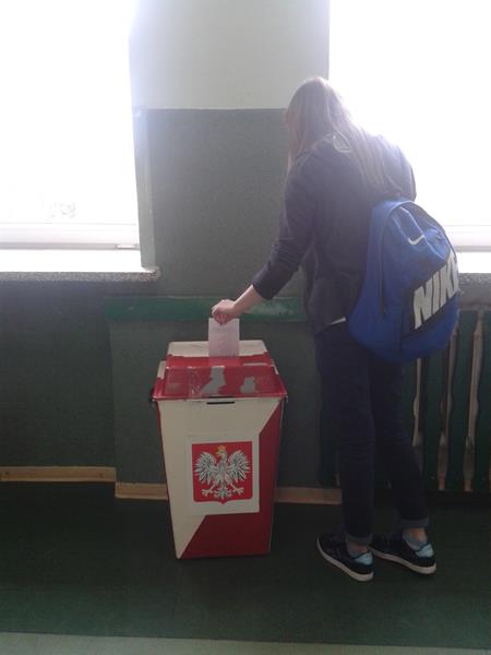 Dnia 30 kwietnia uczniowie klas gimnazjalnych naszej szkoły dzięki akcji „Młodzi głosują” mieli możliwość oddania swojego głosu na wybranego kandydata na prezydenta. Zainteresowanie głosowaniem było dość wysokie, ze 107 uczniów głosowało 80, co daje nam 75% frekwencji.