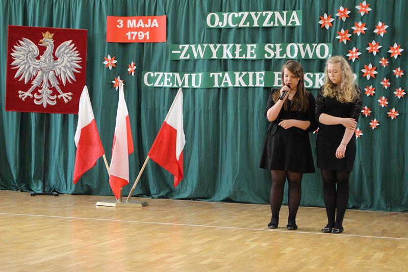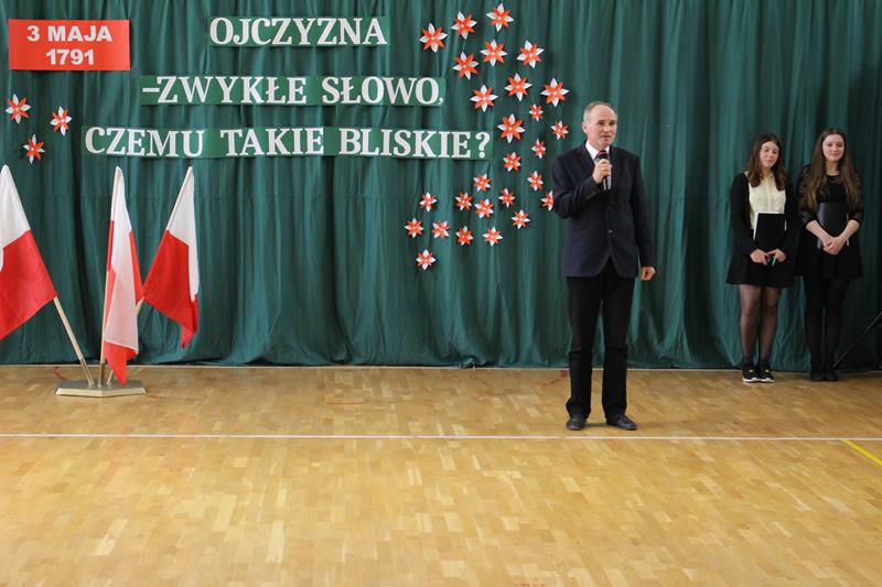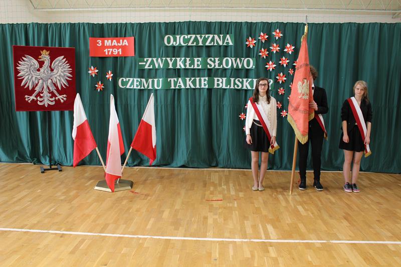 Nad właściwym przebiegiem uroczystości czuwali pedagodzy ZSP: pani Dagmara Świderska, pani Monika Stani oraz pani Marta Osińska - osoby odpowiedzialne za przygotowanie młodzieży do występu, oprawę muzyczną oraz dekoracje. Program słowno-muzyczny stał się krótką lekcją historii, przypomnieniem najważniejszych wydarzeń, ukłonem w stronę przodków, którzy dokonali dzieła uchwalenia Konstytucji. Młodzi recytatorzy stanęli na wysokości zadania, wiersze deklamowali z należytą powagą, w skupieniu. W tym niezwykłym dniu na sali panowała cisza i podniosła atmosfera. Uroczystość przypomniała wszystkim o jednym z ważniejszych wydarzeń w dziejach narodu polskiego.