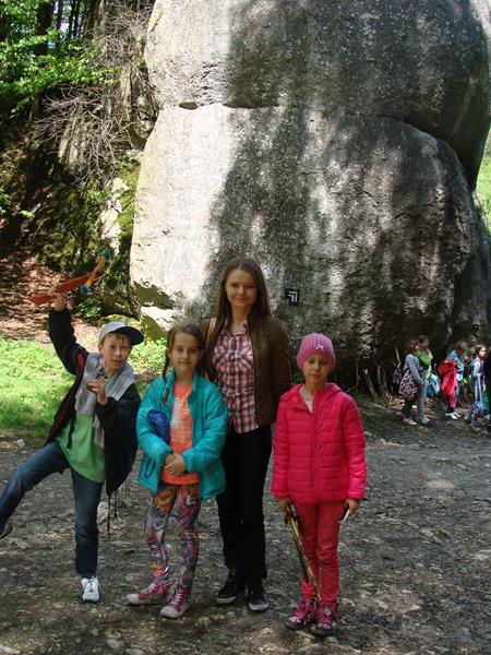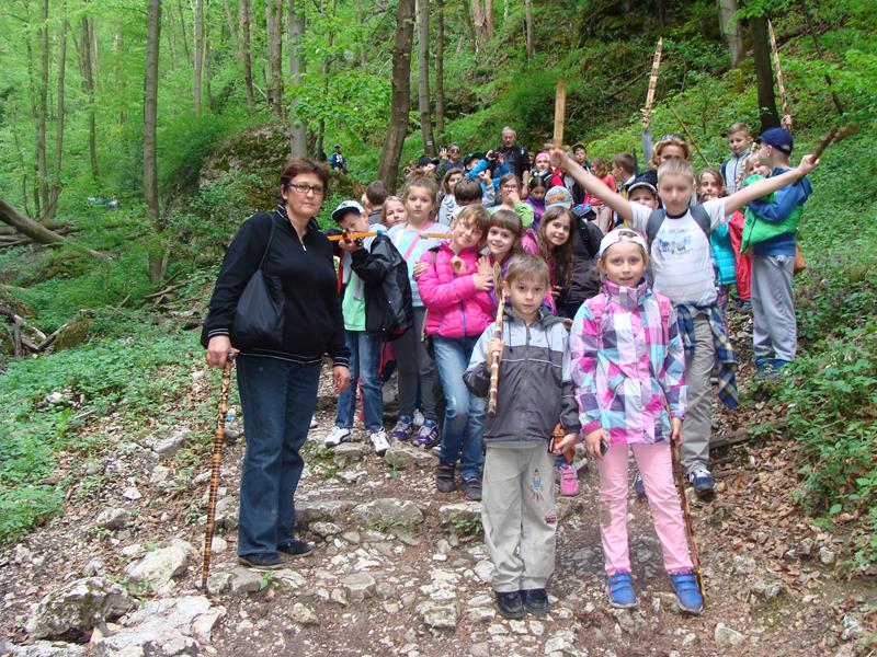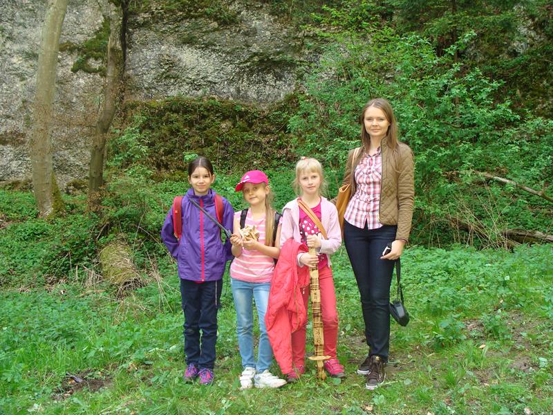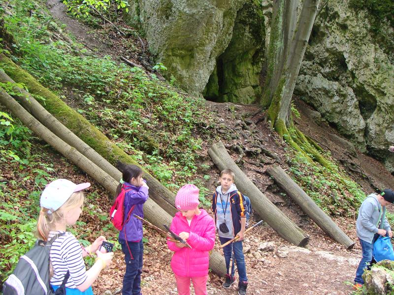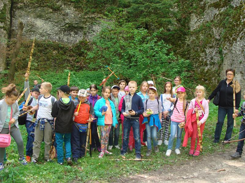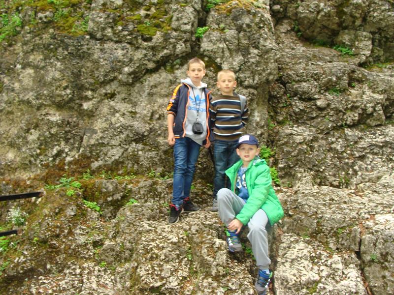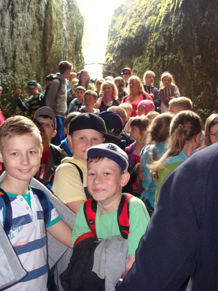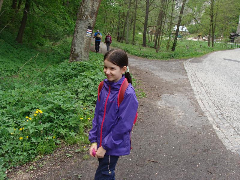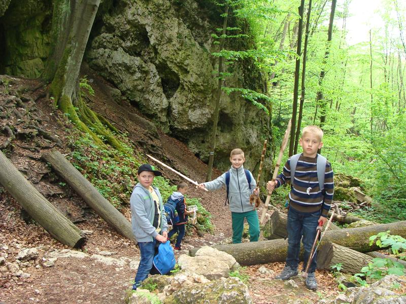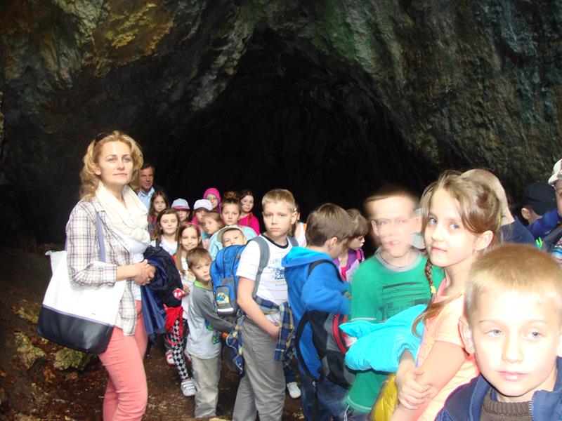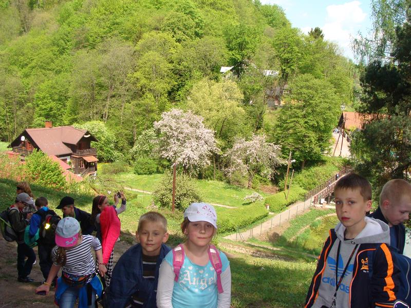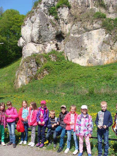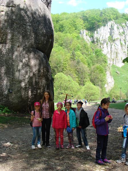 Pierwszym etapem wycieczki był Ojców. Wędrowaliśmy szlakami Ojcowskiego Parku Narodowego, wzdłuż malowniczej doliny Prądnika. Oglądaliśmy piękne skały o rozmaitych kształtach i rozmiarach. Celem wędrówki była Jaskinia Łokietka. Zrobiła ona na nas ogromne wrażenie. Podziwialiśmy w niej wspaniałe stalagmity i stalaktyty oraz słuchaliśmy z ogromnym zainteresowaniem pani przewodnik opowiadającej o jej dawnych mieszkańcach. Powrót do autokaru inną drogą również obfitował w piękne widoki.