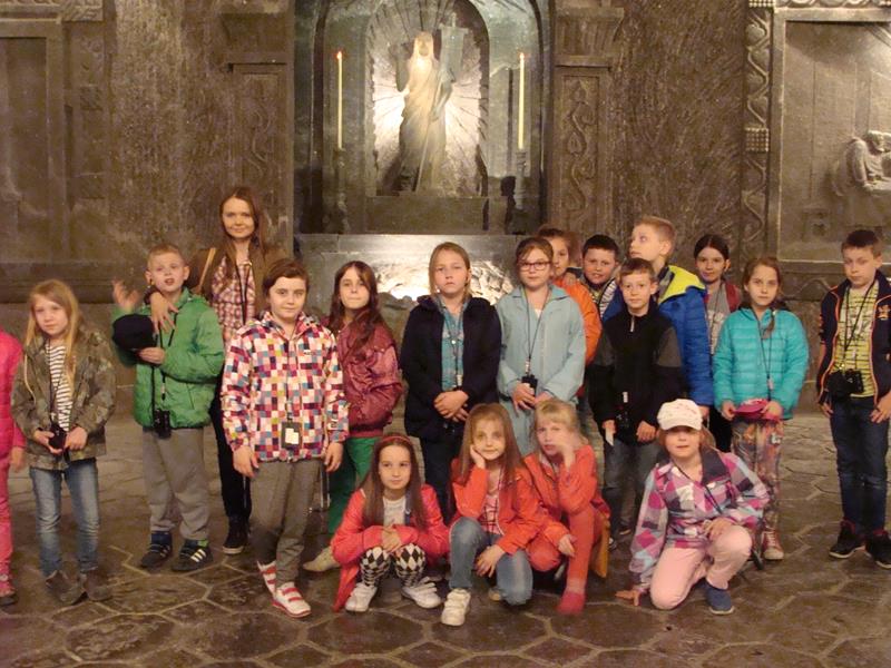 Po długim spacerze na świeżym powietrzu udaliśmy się autokarem do naszego hotelu ''Galicja'' w Wieliczce. Po zjedzeniu obiadu i odpoczynku w hotelowych pokojach czekała na nas kolejna atrakcja - zwiedzanie Kopalni Soli w Wieliczce. Magiczna podróż poprzez labirynt skalnych korytarzy to bardzo dobra okazja, żeby poznać unikalne pejzaże niezwykłych komór oraz odkryć tradycję i historię kopalni. Podczas wycieczki trasą turystyczną z panią przewodnik podziwialiśmy wspaniałe kaplice, urokliwe podziemne jeziorka, oryginalne urządzenia oraz ślady prac górniczych. Kilkugodzinny spacer korytarzami kopalni to nie tylko zwiedzanie, ale też wspaniały zabieg inhalacyjny. Zwiedzanie kopalni zakończyliśmy zakupem pamiątek. Po dniu pełnym wrażeń udaliśmy się do hotelu na odpoczynek.