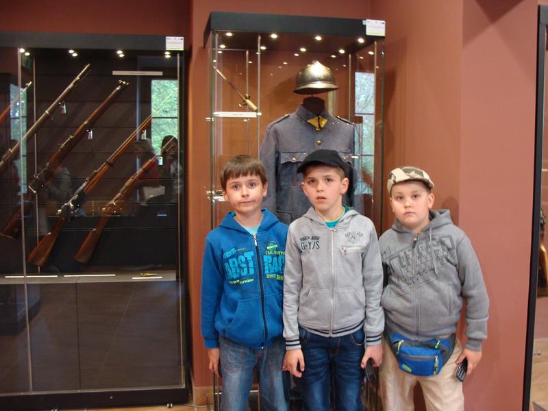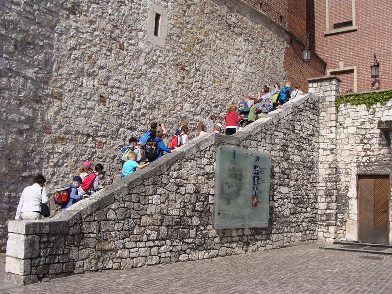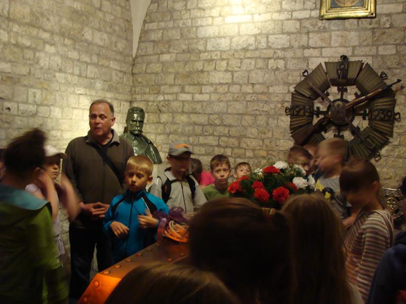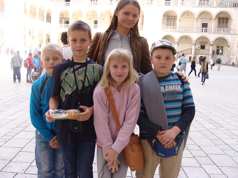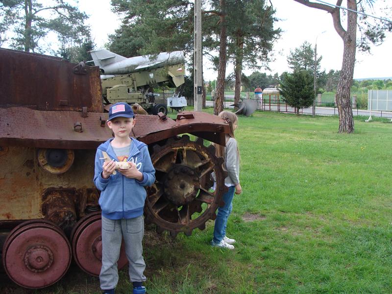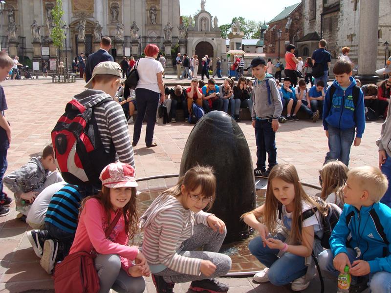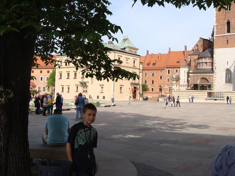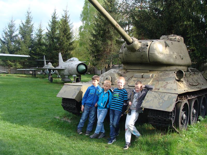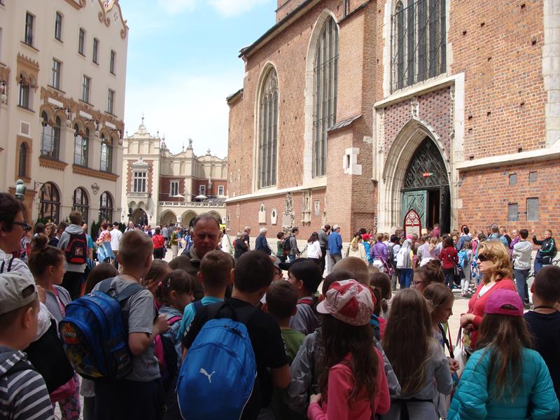 Drugi dzień wycieczki rozpoczęliśmy od zwiedzania Krakowa. Pan przewodnik opowiadał o historii i zabytkach dawnej stolicy Polski. Zwiedzanie Krakowa rozpoczęliśmy od obejrzenia ziejącego ogniem Smoka Wawelskiego. Podziwialiśmy Katedrę na Wawelu, oglądaliśmy położone w jej podziemiach groby władców i wielkich Polaków. Również piękny i bogaty w zabytki był Rynek Starego Miasta, gdzie widzieliśmy Sukiennice, Bazylikę Mariacką z niezwykłym ołtarzem Wita Stwosza. Spacerując doszliśmy do Pałacu Biskupiego z oknem papieskim. Po zakupie kolejnych pamiątek pojechaliśmy do ostatniego punktu naszej wycieczki - Muzeum Orła Białego. W muzeum posiadającym największą w kraju kolekcję ciężkiego sprzętu bojowego oglądaliśmy działa artyleryjskie, armaty przeciwpancerne i przeciwlotnicze, wyrzutnie rakietowe, czołgi, wozy pancerne i samoloty wojskowe różnego przeznaczenia. Poza plenerową ekspozycją zwiedzaliśmy również sale muzealne z dokumentami i materiałami dotyczącymi działalności partyzanckiej na Kielecczyźnie, Polskiego Państwa Podziemnego i walki o wolność.