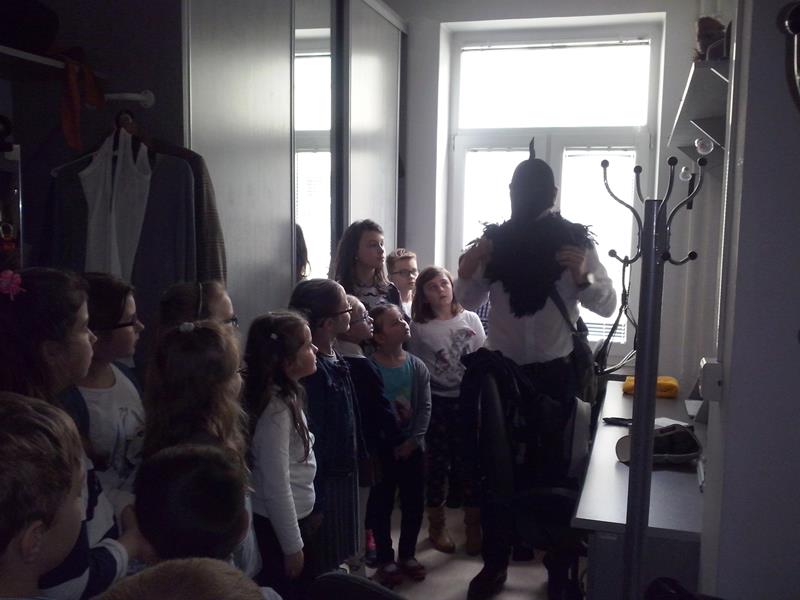 Powieść Astrid Lindgren to jedna z najbardziej ukochanych książek dzieciństwa wielu pokoleń. Dlatego dzieci z tak ogromnym zainteresowaniem obejrzały jej sceniczną wersję. Sztuka została urozmaicona aranżacjami muzycznymi oraz tańcem i w wierny sposób odtworzyła treści zawarte w książce. Po spektaklu, dzieci wraz z aktorami: panią Dorotą  Gorjainow i panem Zbigniewem Kozłowskim udały się w magiczną wędrówkę po teatrze. Zwiedziły foyer, widownię, scenę, garderobę, pracownię krawiecką, charakteryzatornię oraz magazyn kostiumów.  Na scenie miały okazję zabawy z rekwizytami teatralnymi oraz wykonywały proste zadania sceniczne. Na zapleczu teatru spotkały jego pracowników i uzyskały odpowiedź na pytanie: kto pracuje w teatrze. Po zwiedzeniu teatru przyszedł czas na warsztaty małego aktora, które fenomenalnie poprowadził pan Zbyszek Kozłowski. Dzieci dowiedziały się czym jest dykcja i emisja głosu. Zaprezentowane zostały im zabawne ćwiczenia emisyjno- dykcyjne. Dzieci uczyły się odpowiedniego poruszania po scenie w różnych sytuacjach. Wykonywały również proste rozgrzewki ruchowe, które przygotowują aktora do skutecznej pracy na scenie. Warsztaty były prowadzone w ciekawy sposób i bardzo podobały się naszym dzieciom.  Z uśmiechniętymi buziami powróciły do autokaru.
