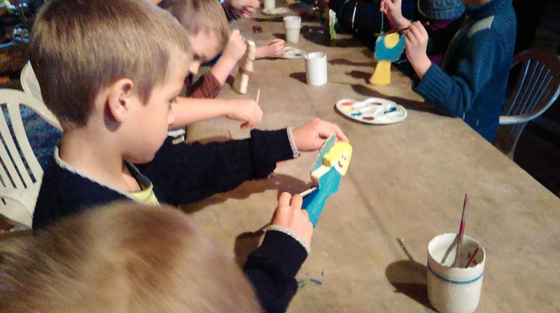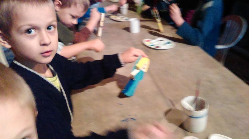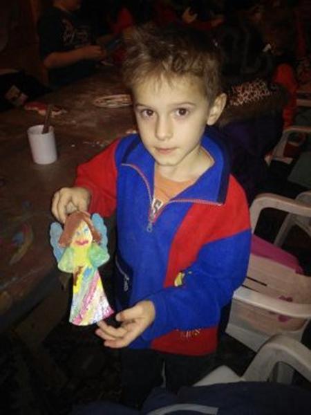 Pierwszą atrakcją było robienie aniołów. Dzieci miały za zadanie „wyszlifować” papierem ściernym drewniane aniołki. Wygładzone aniołki dzieci pomalowały farbami. Czynności te sprawiły im wiele radości. Prześcigały się w pomysłach malowania swoich aniołków.