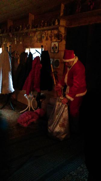 Pod koniec wycieczki dzieci odwiedził długo wyczekiwany gość- Święty Mikołaj. Jak się okazało usłyszał śpiewające w lesie dzieci i postanowił je odwiedzić. Pod piękną, pachnącą choinką ustawioną w rogu chaty Mikołaj rozdawał dzieciom prezenty.