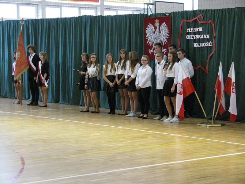 Zebrani złożyli hołd wszystkim, którzy przed laty przelewali krew, byśmy mogli żyć w wolnym, niepodległym kraju. Uczniowie klasy II gimnazjum i chór szkolny zaprezentowali program artystyczny, w którym przypomnieli najważniejsze, zwrotne momenty w dziejach narodu polskiego kroczącego ku wolności i niepodległości. Pieśni i teksty skłaniały słuchaczy do zadumy nad minionymi wydarzeniami i refleksji na temat tego, co dziś znaczy dla Polaka słowo wolność, niepodległość.