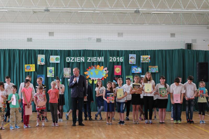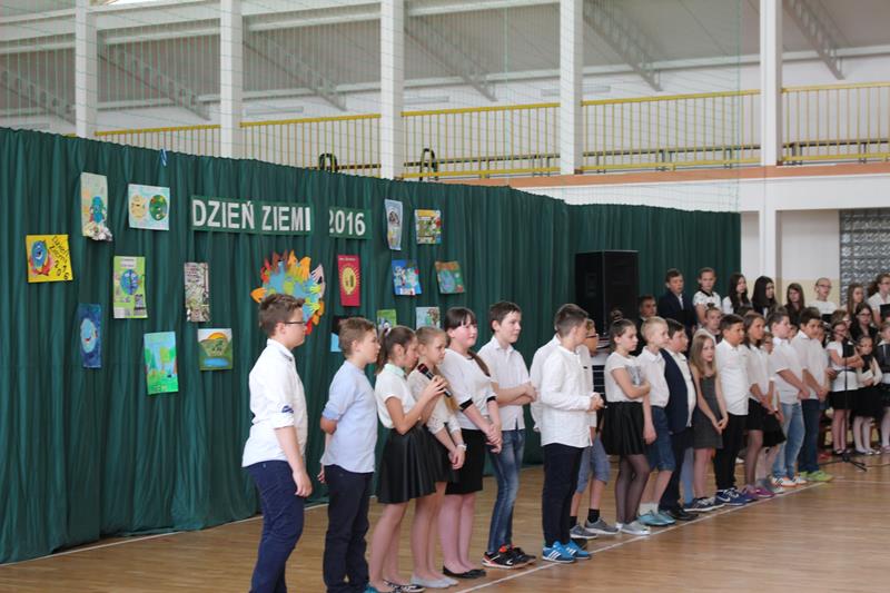 W dniu 23.05.2016 r. w naszej szkole odbył się uroczysty apel z okazji Światowego Dnia Ziemi organizowany przez Panią Grażynę Rozmus. Uczniowie klasy V w przygotowanym programie słowno-muzycznym przypomnieli wszystkim obecnym, dlaczego oraz w jaki sposób należy dbać o naszą Ziemię. Nad recytacją uczniów czuwała Pani Danuta Macierzyńska. Mieliśmy także okazję posłuchać ciekawych wykonań utworów muzycznych przygotowanych przez Panią Monikę Piekarską. Dekoracją sceny zajęła się natomiast Pani Karolina Grzechnik.