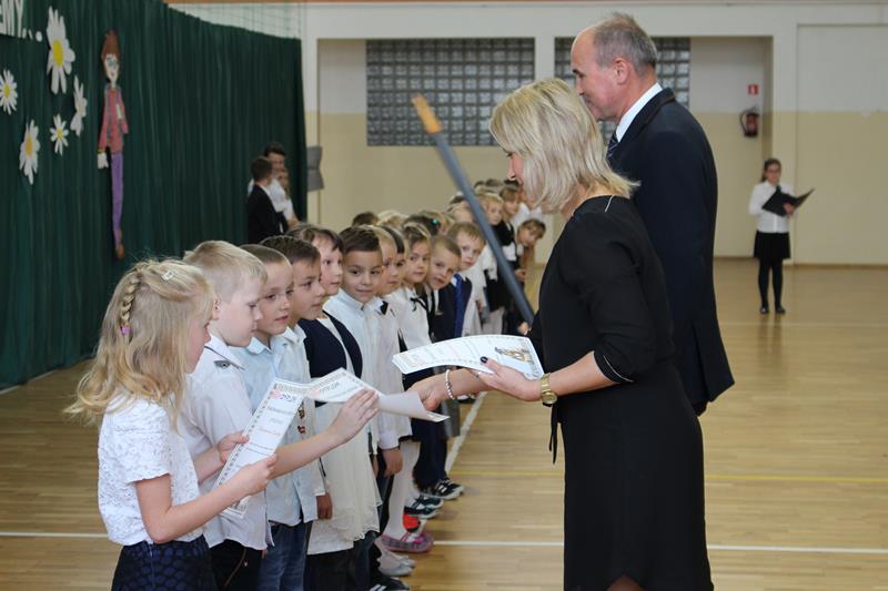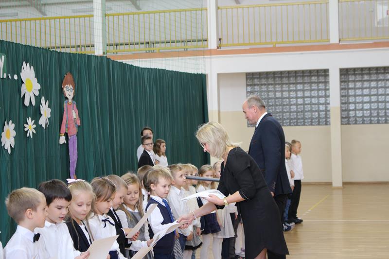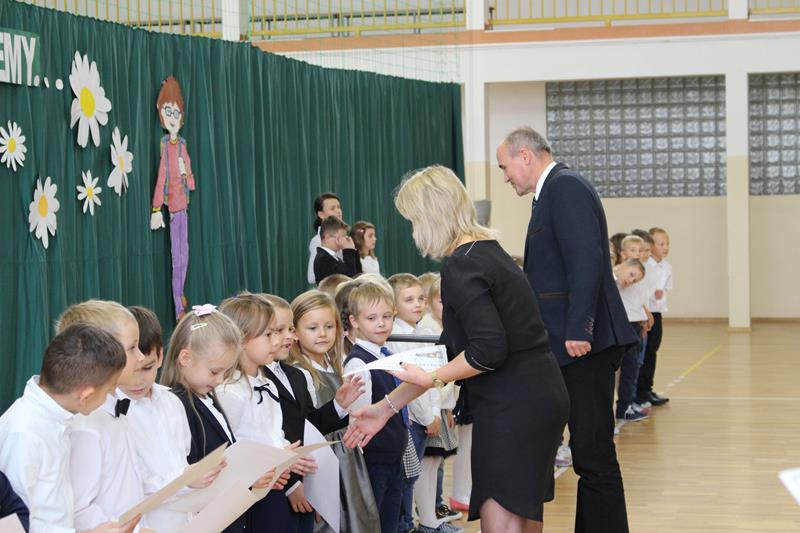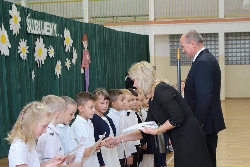 Pierwszoklasiści pod okiem swoich wychowawczyń p. Iwony Janoty i p. Małgorzaty Siedleckiej zaprezentowali krótki program artystyczny. W części oficjalnej, uczniowie złożyli uroczystą przysięgę, a następnie przez Pana Dyrektora zostali pasowani na uczniów i uczennice ZSP w Goszczynie. Na pamiątkę każdy uczeń otrzymał dyplom. Życzymy zatem wszystkim pierwszakom z okazji ich święta wszystkiego najlepszego, aby ten ich zapał do nauki trwał jak najdłużej i przekładał się na jak najlepsze zadowolenie dla Rodziców i nauczycieli.