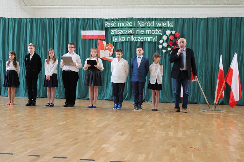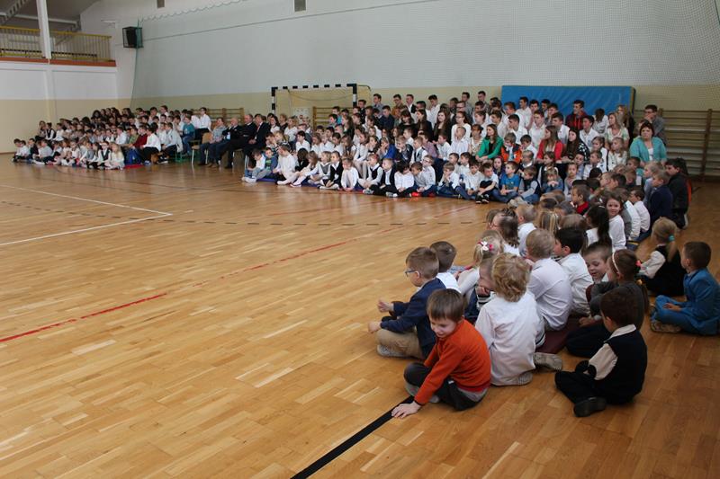 Po części artystycznej głos zabrał, specjalnie zaproszony na tę okazję, wójt Gminy Goszczyn, Pan Sławomir Słabuszewski. Na widowni zgromadzili się także wszyscy uczniowie naszej szkoły wraz z gronem pedagogicznym.
