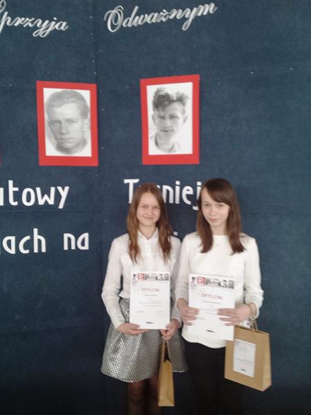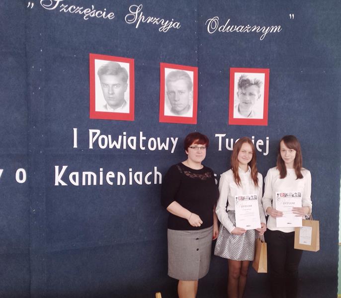 7 kwietnia 2016 roku w Zespole Szkół im. Szarych Szeregów w Tarczynie odbył się I Powiatowy Turniej Wiedzy o „Kamieniach na szaniec” pt. „Szczęście sprzyja odważnym”. W rywalizacji udział wzięło 9 dwuosobowych drużyn. Naszą szkołę godnie reprezentowały uczennice klasy IIa: Zuzanna Jakubczak i Kinga Łubińska.