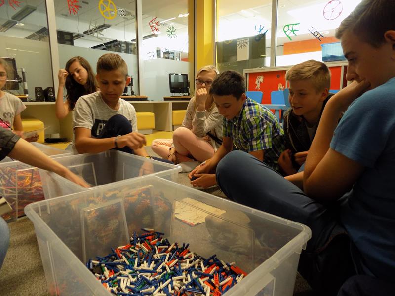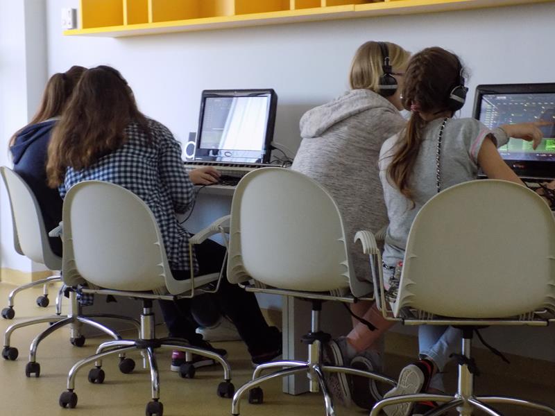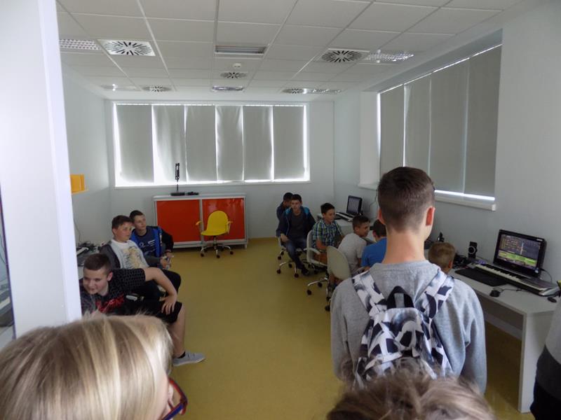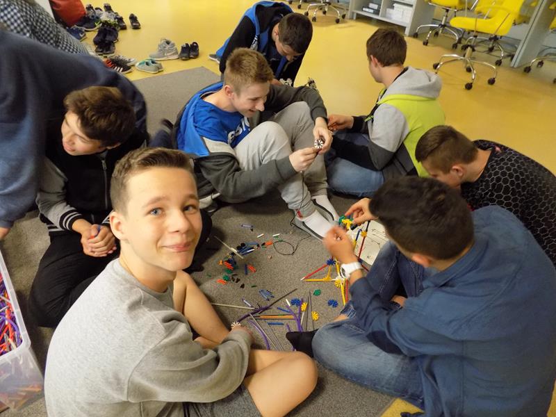 Zajęcia dla młodzieży zostały podzielone na trzy bloki tematyczne: LogiKit, MultiArt oraz MultiMusic. LogiKit to zajęcia edukacyjne z wykorzystaniem klocków K’nex, silników i oprogramowania TechnoLogicaKnex. Uczniowie mieli za zadanie zbudować figurę z klocków na podstawie instrukcji oraz uruchomić ją dzięki umieszczeniu oraz podłączeniu silników. MultiArt to zajęcia komputerowe wprowadzające uczniów w podstawy grafiki komputerowej oraz plastyki. Na zajęciach MultiMusic uczestnicy wycieczki mogli stworzyć własną muzykę, bazując na odpowiednim programie komputerowym. Uczniowie zapoznali się ze zbiorami bibliotecznymi: książkami, filmami, płytami CD, audiobookami, płytami winylowymi. Młodzież miała także możliwość wyszaleć się w Wykrzykniku, czyli niewielkim pomieszczeniu mierzącym poziom natężenia dźwięku.