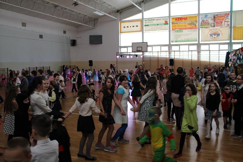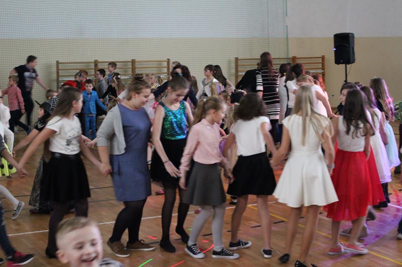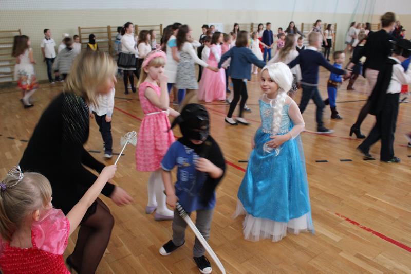 Dzieci chętnie brały w nich udział. Zarówno muzyka jak i atmosfera były rewelacyjne. Zabawa dostarczyła niezapomnianych wrażeń i emocji. Dzieci przebrane były w piękne i pomysłowe stroje, wcieliły się w różne postaci. W tym roku dominowały stroje o tematyce bajkowej, ale nie brakowało również uroczych zwierzątek, mieliśmy także jednego strażaka – tak na wszelki wypadek :). Zabawę uprzyjemnił pyszny poczęstunek przygotowany przez rodziców. Wszyscy bawiliśmy się wyśmienicie, bo tak zawsze w naszej szkole się bawimy!