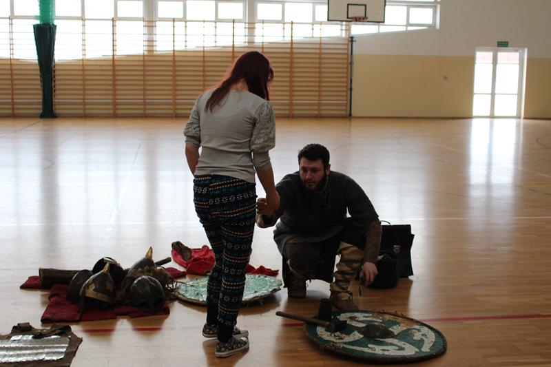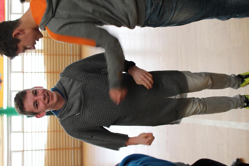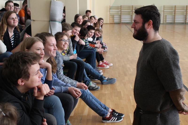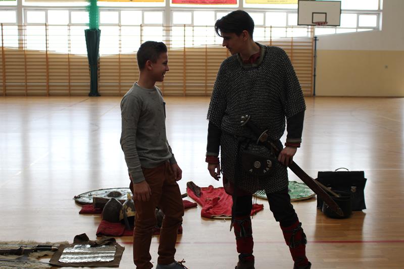 Dnia 25 stycznia 2016 roku w naszej szkole odbyła się nietypowa lekcja historii. Uczniowie przypomnieli sobie najważniejsze wydarzenia i daty z okresu Polski pierwszych Piastów. Mieli okazję wziąć udział w scenkach historycznych, przymierzyć repliki strojów średniowiecznych, z bliska obejrzeć zbroje rycerskie, hełmy, miecze, tarcze.