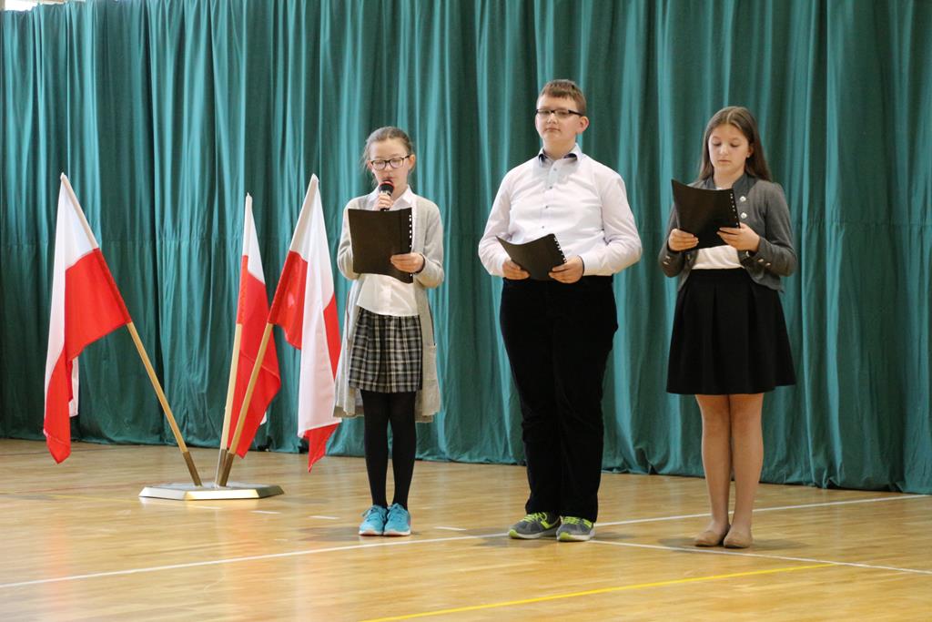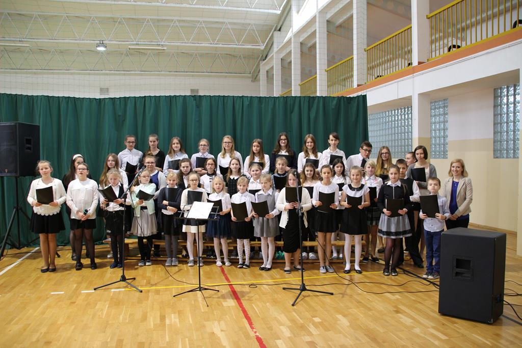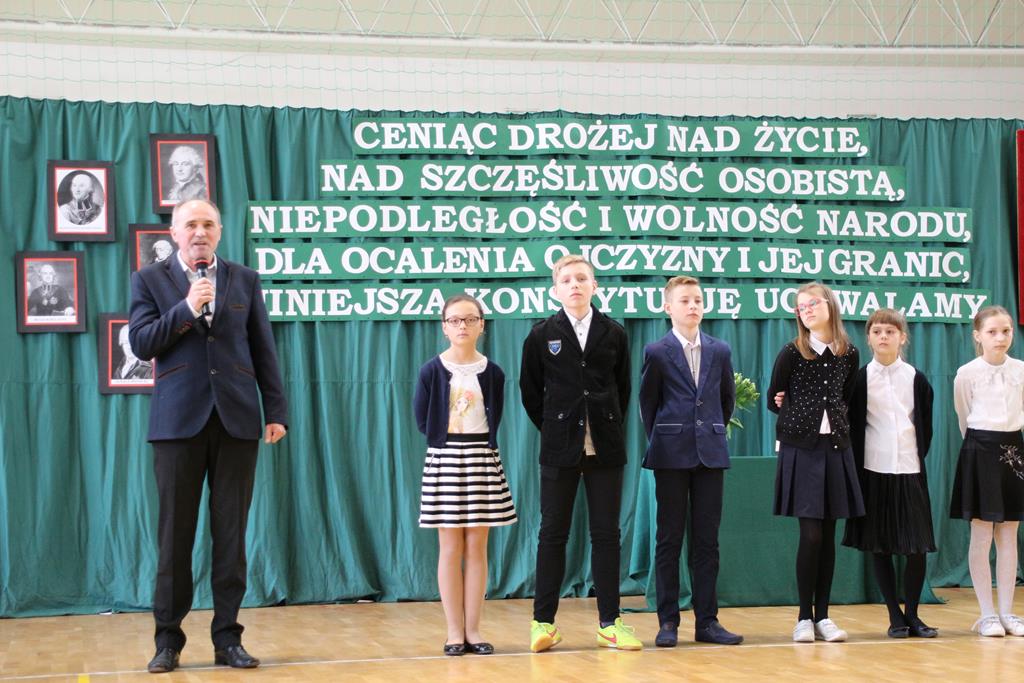 Po części artystycznej głos zabrał dyrektor szkoły Pan Mariusz Wangryn. Na widowni zgromadzili się wszyscy uczniowie szkoły wraz z gronem pedagogicznym. Nad właściwym przebiegiem uroczystości, przygotowaniem uczniów do występu, oprawą muzyczną oraz dekoracją sceny czuwały: Pani Monika Piekarska i Pani Katarzyna Litwin.