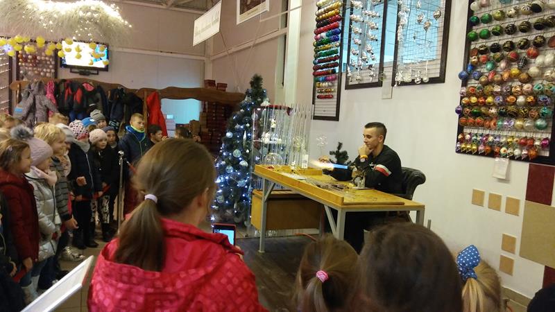 W tej podkarpackiej miejscowości, oddalonej od Goszczyna o 190 km, zwiedzaliśmy pierwsze na świecie Muzeum Bombki Choinkowej. Dzieci miały okazję piękne eksponaty- bombki tradycyjne oraz wytworzone w niespotykanych kształtach (auta, mikołaje, anioły i wiele, wiele innych…). Po zapoznaniu się z techniką wytwarzania bombek uczniowie wzięli udział w warsztatach, podczas których każdy własnoręcznie ozdobił swoją bombkę. Na koniec pobytu w Muzeum chętni zakupili pamiątkowe ozdoby choinkowe.