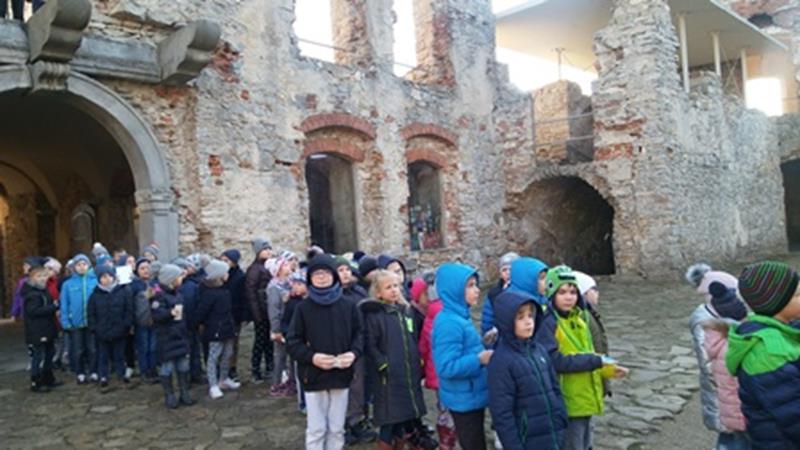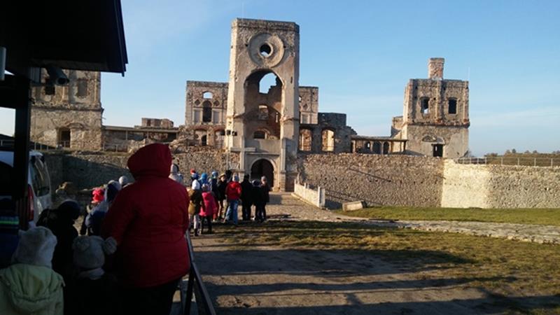 W drodze powrotnej zwiedziliśmy największą zabudowę pałacową w Europie przed powstaniem Wersalu- Zamek Krzyżtopór. Dzieci wysłuchały opowieści pani przewodnik dotyczących historii powstania zamku oraz wielu ciekawostek związanych z czasami świetności budowli. Trzecioklasiści poszerzyli swoje wiadomości zdobyte podczas niedawno realizowanych lekcji związanych z Zamkiem Krzyżtopór.
