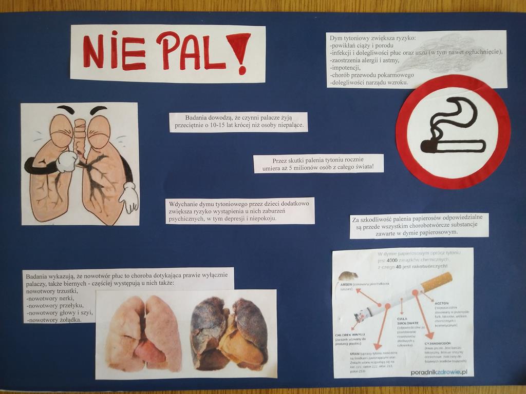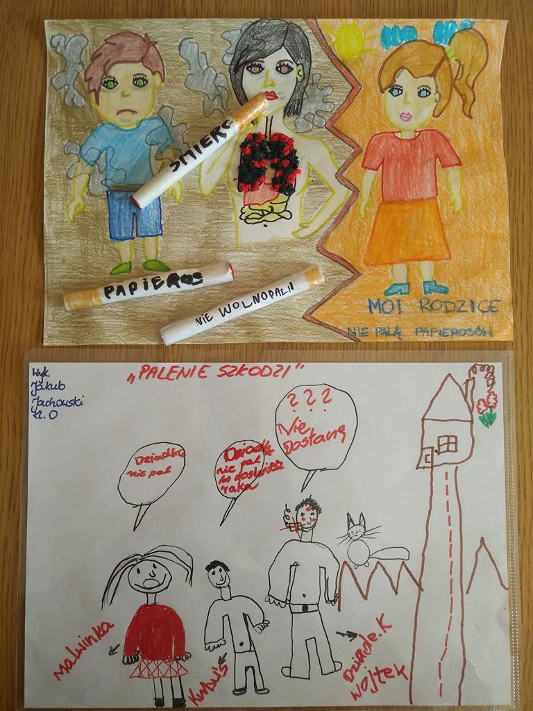 W klasie drugiej  przeprowadzone były zajęcia przygotowane do programu „Nie pal przy mnie proszę”.  Dzieci uporządkowały i poszerzyły wiadomości na temat zdrowia. Uświadomiły sobie, że same mogą unikać szkodliwych dla zdrowia sytuacji, poznały sposoby zachowań w sytuacjach, gdy inni ludzie palą przy nich papierosy.