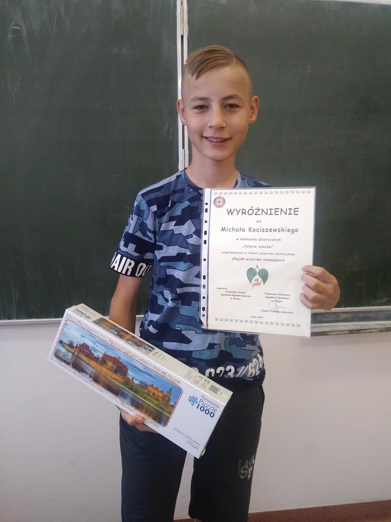 W ramach realizacji programów edukacyjnych: „Trzymaj formę”, „Czyste powietrze wokół nas”, „Nie pal przy mnie proszę”, „Znajdź właściwe rozwiązanie.”, uczniowie naszej szkoły wzięli udział w konkursie plastycznym organizowanym przez Powiatową Stację Sanitarno-Epidemiologiczną w Grójcu.