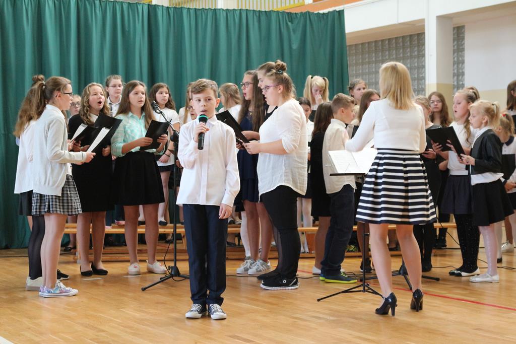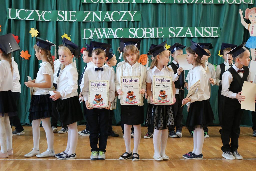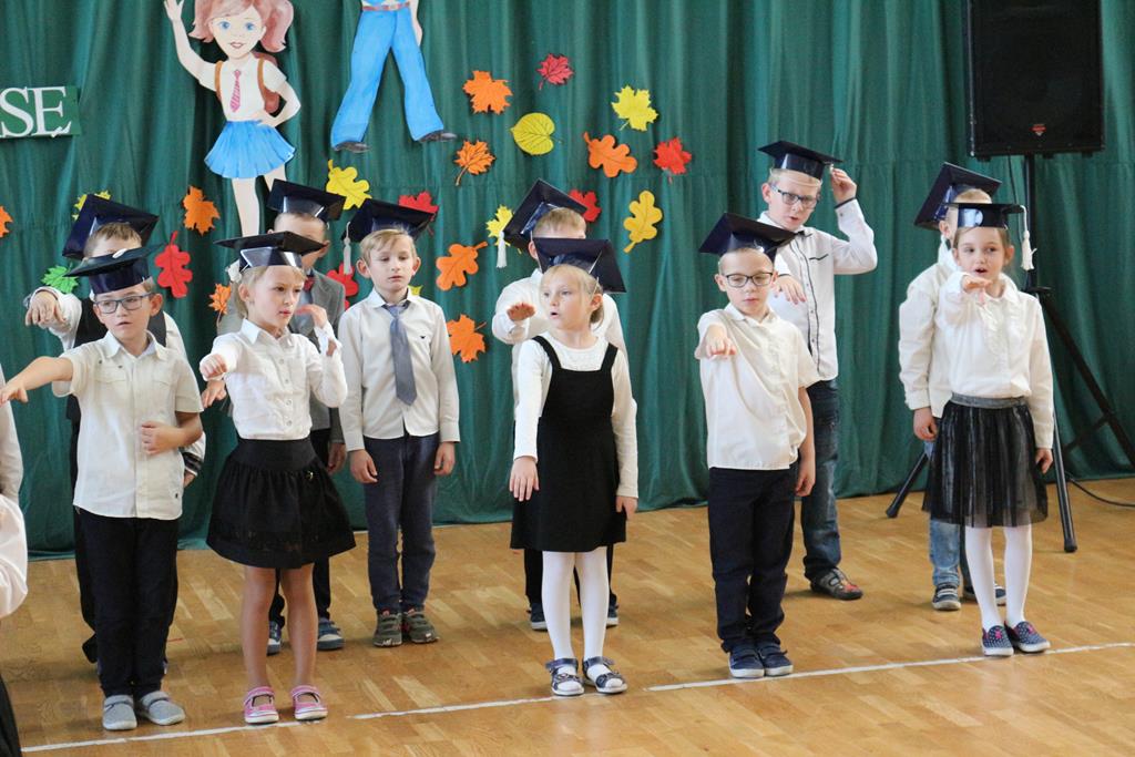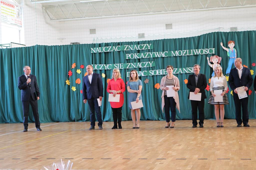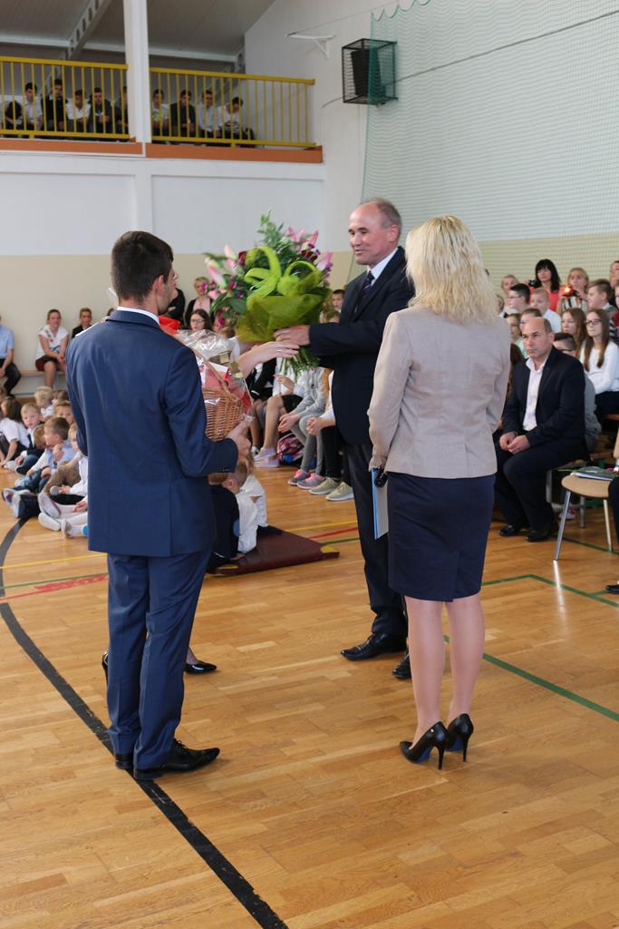 Część artystyczną zakończyły życzenia i podziękowania kierowane do nauczycieli. Głos zabrał Pan Wójt Sławomir Słabuszewski, przewodnicząca Rady Rodziców Pani Żaneta Wrzesień oraz Dyrektor PSP Pan Mariusz Wangryn, który wręczył wybranym nauczycielom dyplomy uznania oraz Nagrody Dyrektora.