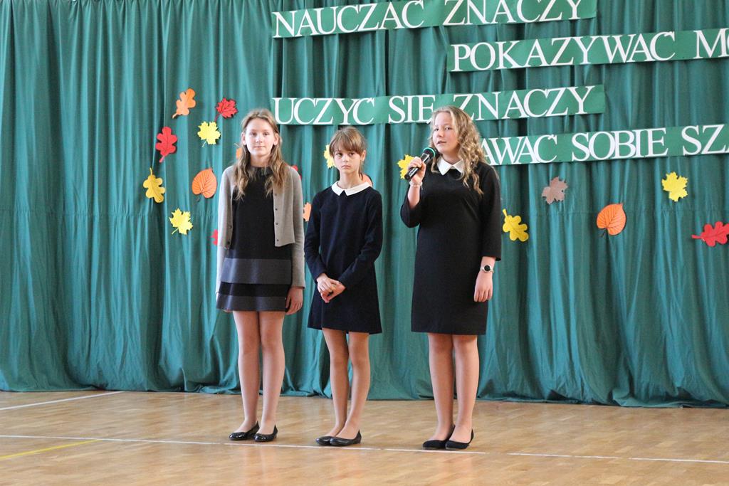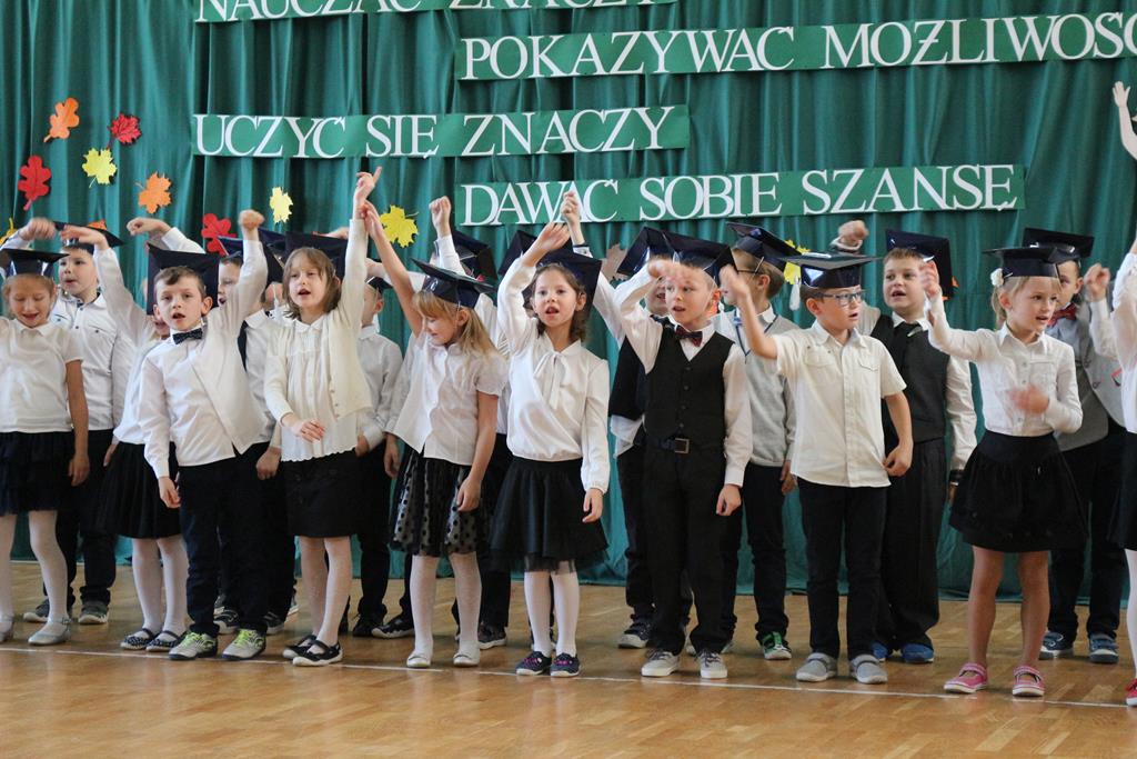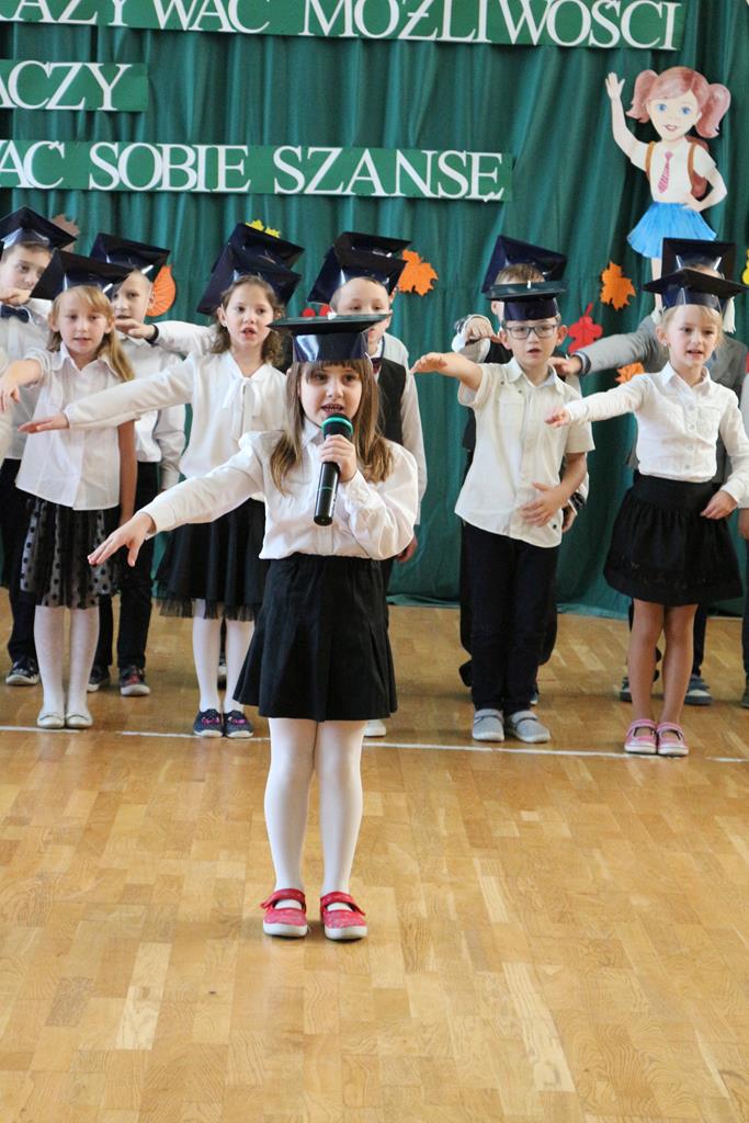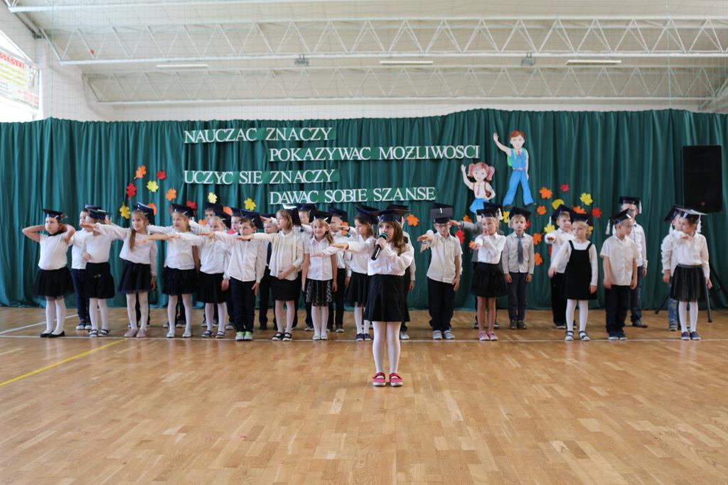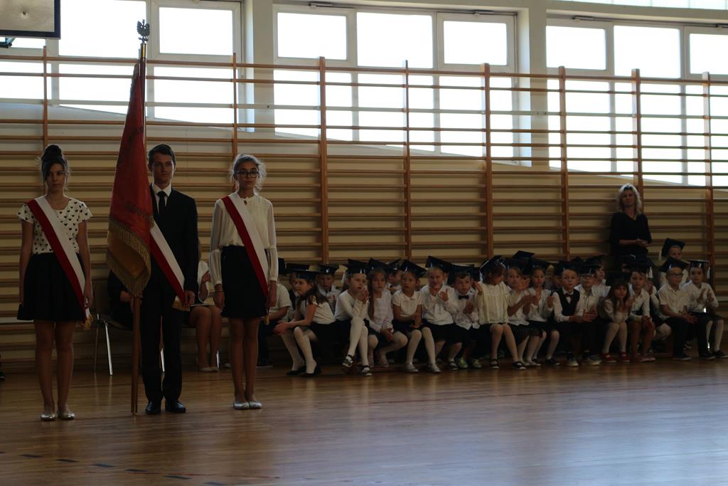 Część artystyczną zakończyły życzenia i podziękowania kierowane do nauczycieli. Głos zabrał Pan Wójt Sławomir Słabuszewski, przewodnicząca Rady Rodziców Pani Żaneta Wrzesień oraz Dyrektor PSP Pan Mariusz Wangryn, który wręczył wybranym nauczycielom dyplomy uznania oraz Nagrody Dyrektora.