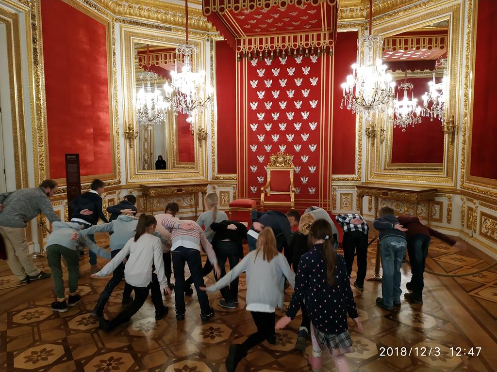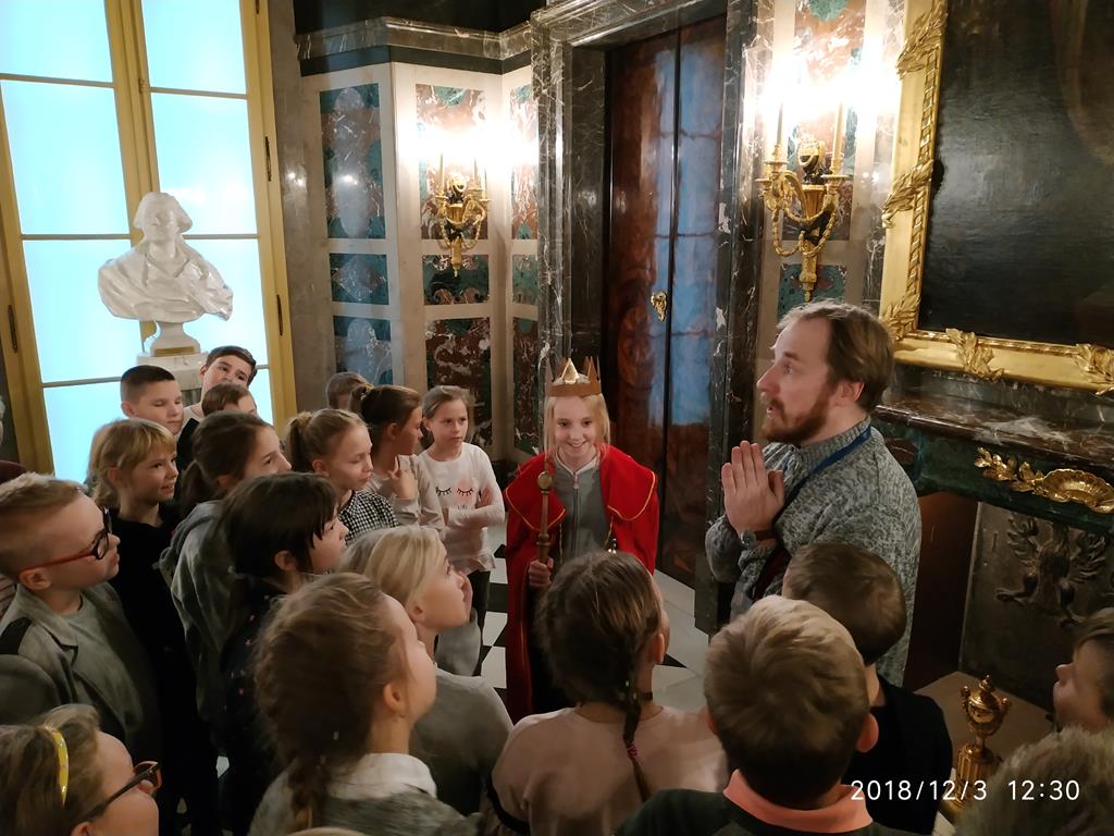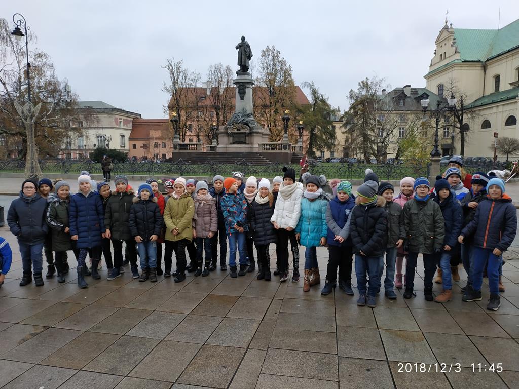 Dnia 3.12.2018 klasy IVa i IVb wraz z opiekunami wybrały się na wycieczkę do Warszawy. W teatrze Palladium uczniowie obejrzeli spektakl pt. Czarodziej. Aktorzy zabrali widzów w niezwykłą podróż do krainy iluzji, przekonując w czasie wspólnej drogi, że każdy potrafi czarować, bo magia jest w nas. Po spektaklu, spacerem ulicami Warszawy, dotarliśmy do Zamku Królewskiego. Tu rozpoczęła się kolejna lekcja, tym razem z zakresu historii. Uczniowie mieli okazję zwiedzić komnaty zamkowe i posłuchać ciekawych opowieści przewodnika na temat życia codziennego, jakie kwitło na zamku przed wiekami.