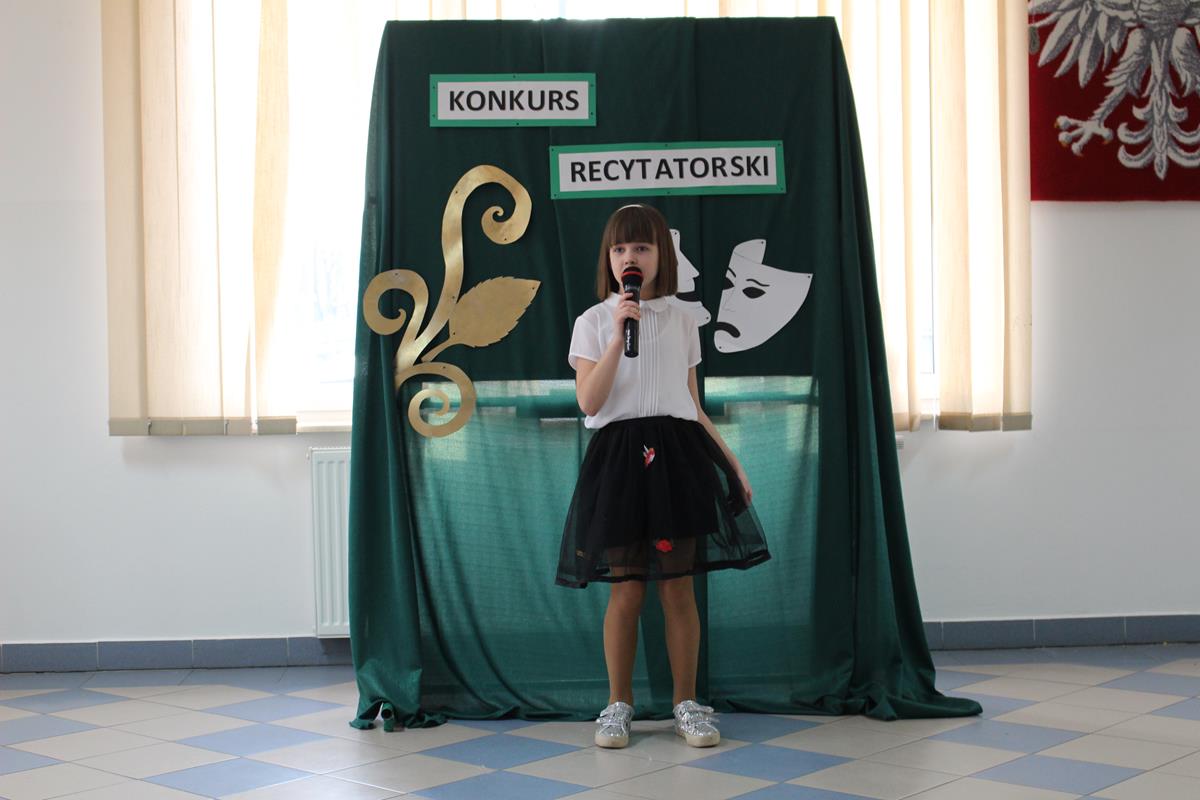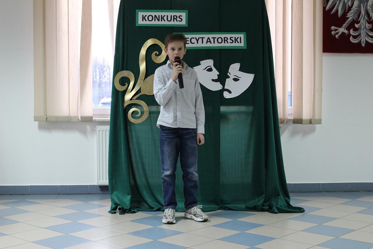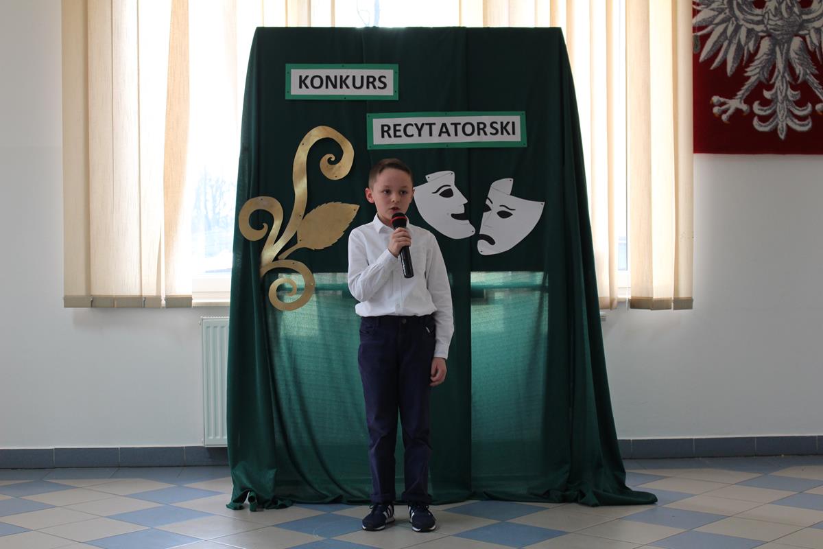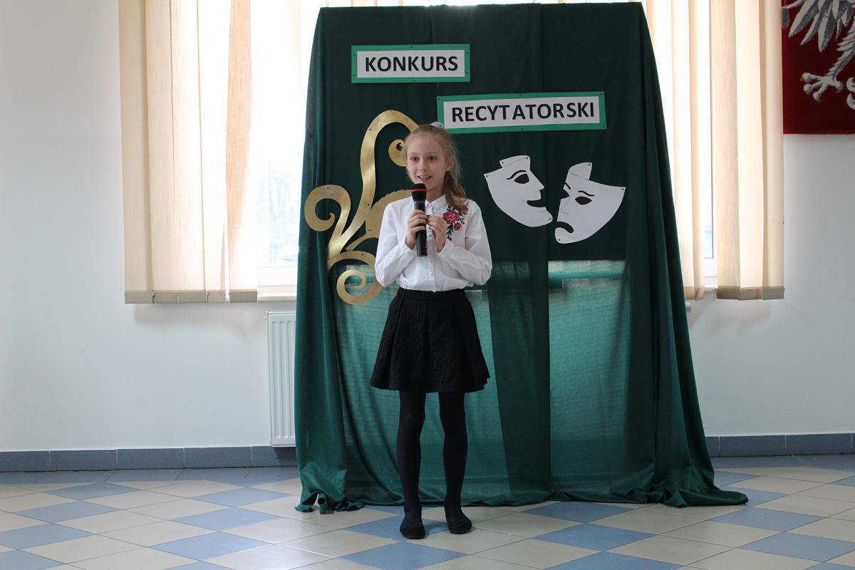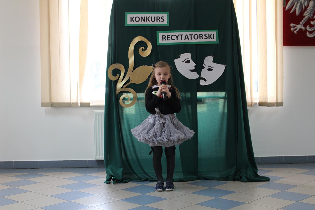 15 lutego 2019 roku w naszej szkole odbył się Gminny Konkurs Recytatorski. Zebrani goście mieli możliwość wysłuchania deklamacji „Samochwały” czy „Skarżypyty” Jana Brzechwy, „Stefka Burczymuchy” Marii Konopnickiej, „Nic dwa razy” Wisławy Szymborskiej oraz wielu innych recytacji. W konkursie wzięło udział 26 uczestników. A oceny wystąpień dokonało oraz jury w składzie – p. Beata Turzyńska oraz p. Karolina Grzechnik.