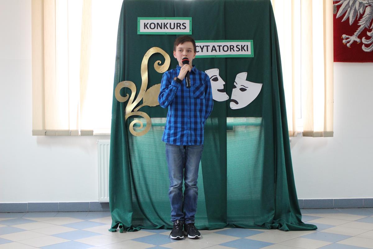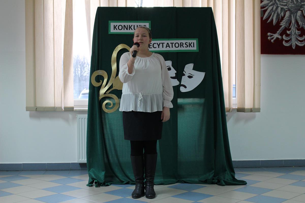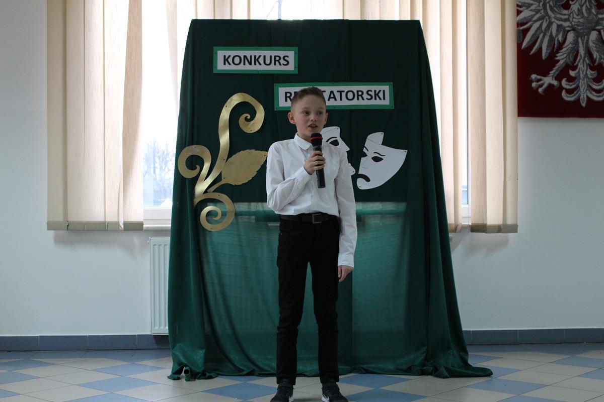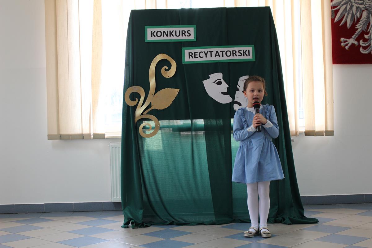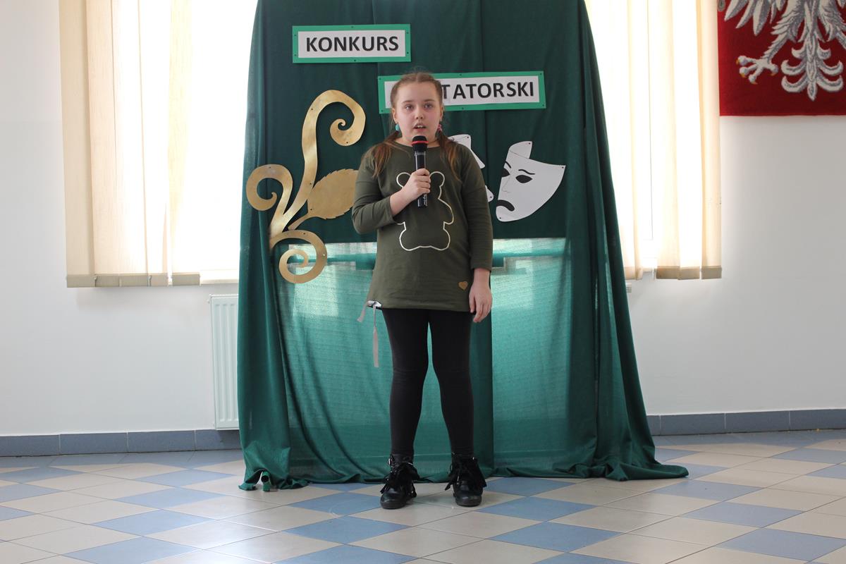 15 lutego 2019 roku w naszej szkole odbył się Gminny Konkurs Recytatorski. Zebrani goście mieli możliwość wysłuchania deklamacji „Samochwały” czy „Skarżypyty” Jana Brzechwy, „Stefka Burczymuchy” Marii Konopnickiej, „Nic dwa razy” Wisławy Szymborskiej oraz wielu innych recytacji. W konkursie wzięło udział 26 uczestników. A oceny wystąpień dokonało oraz jury w składzie – p. Beata Turzyńska oraz p. Karolina Grzechnik.