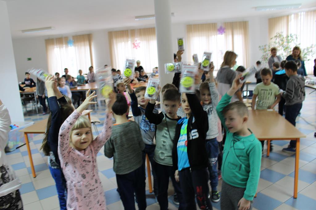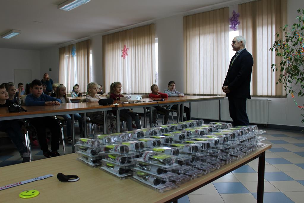 Uczniowie zostali wyposażeni w specjalne zestawy, w skład których wchodzą elementy odblaskowe w formie zawieszek, które można przypiąć do ubrania lub plecaka, opaski odblaskowej oraz opaski LED, którą można założyć na rękę. Dzieci biorące udział w spotkaniu mogły zobaczyć jak widoczna dla kierowcy samochodu jest osoba z odblaskiem i bez niego oraz dowiedziały się jakich zagrożeń można uniknąć zakładając odblaski w odpowiednim miejscu.