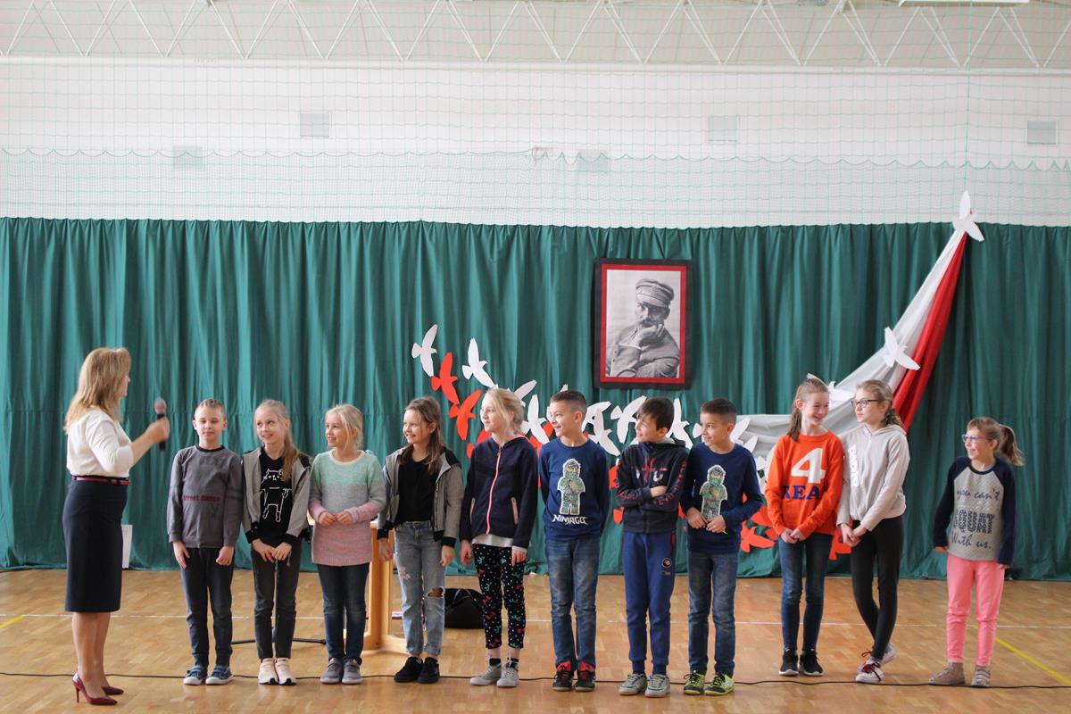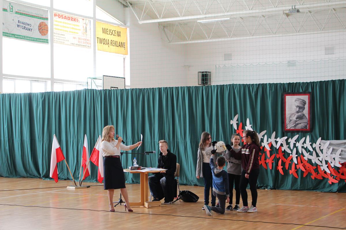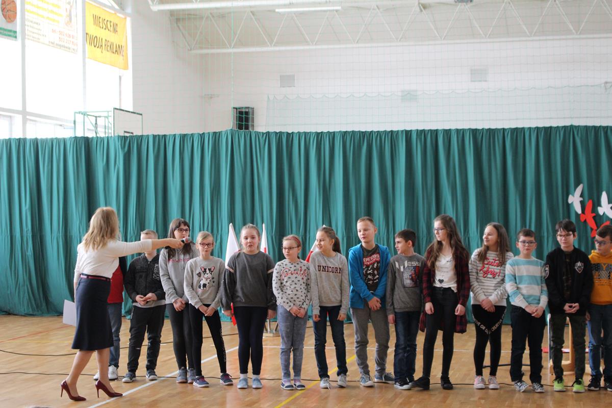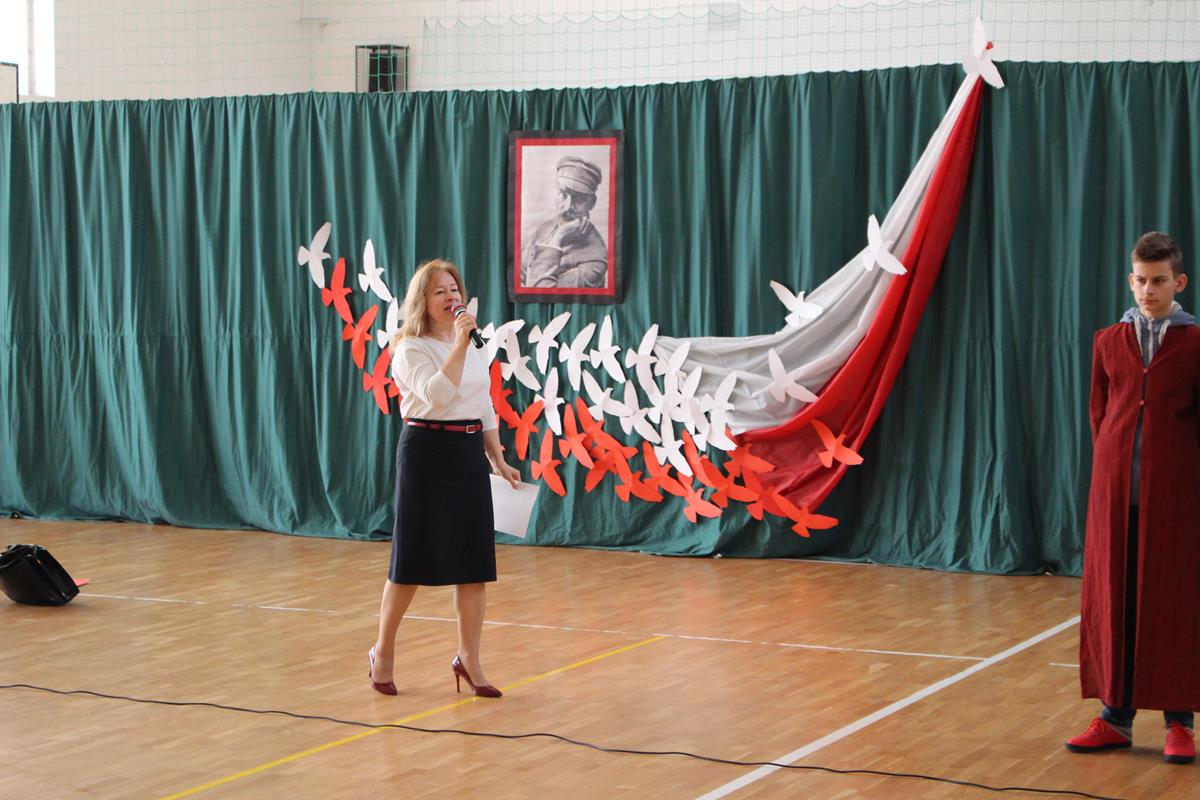 W poniedziałek 7 stycznia odbyła się niecodzienna lekcja historii pt. „Kocham Polskę”. Lekcję poprowadziła pani Mariola Wiewiór, była mieszkanka Goszczyna i były nauczyciel naszej Szkoły. W programie autorka wykorzystała własną twórczość patriotyczną oraz ciekawe pomoce dydaktyczne przybliżające czasy rozbiorów, walki o jej niepodległość i jej odzyskanie.