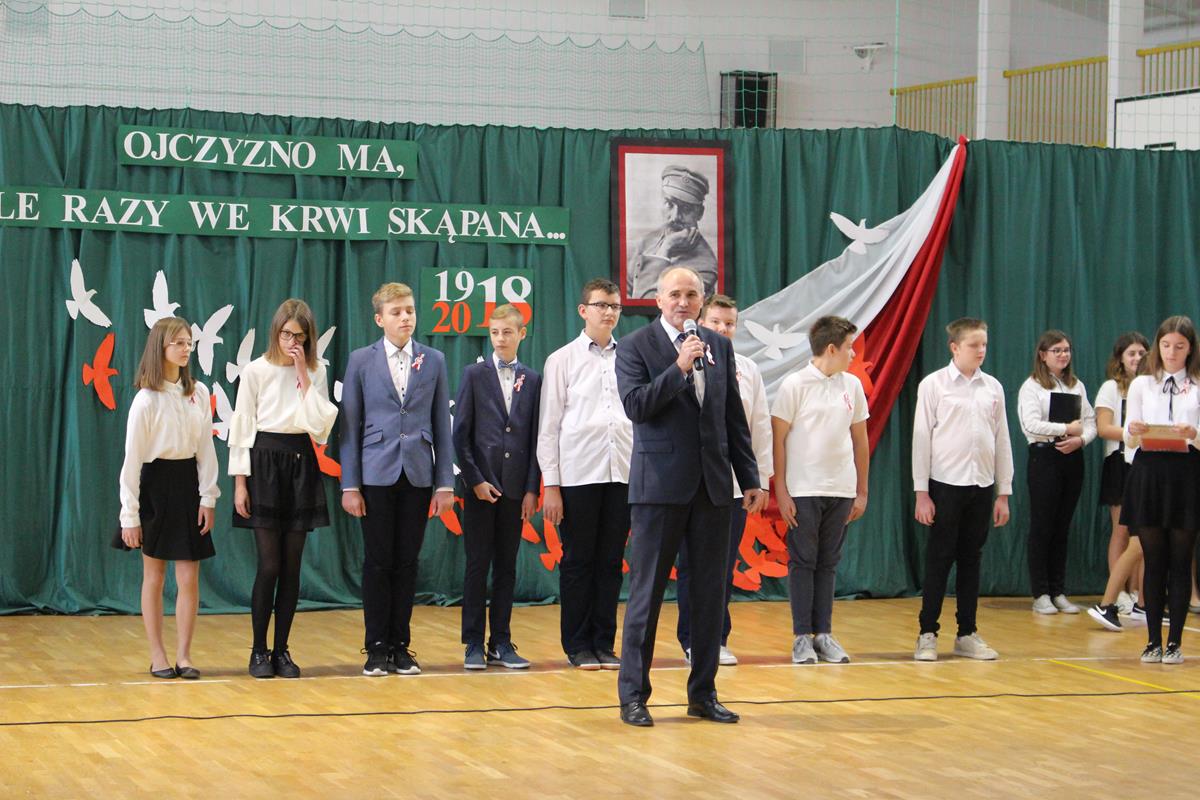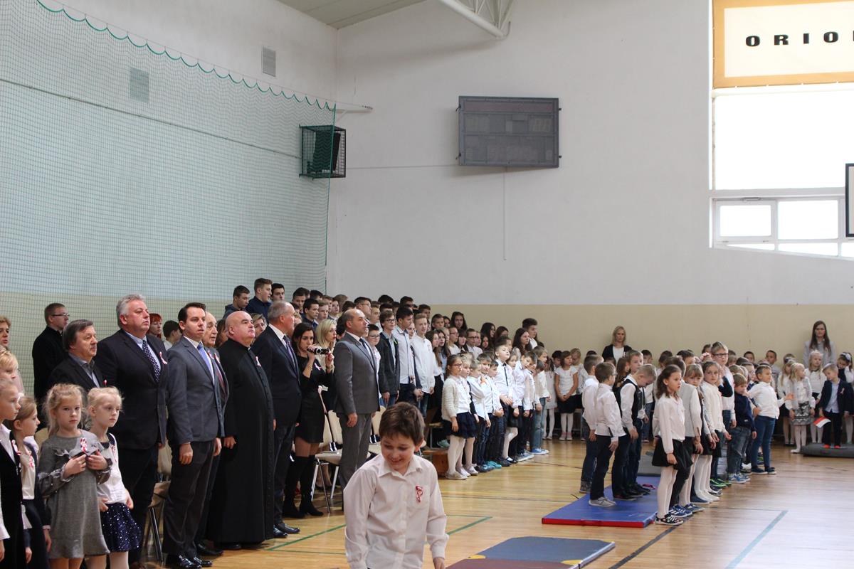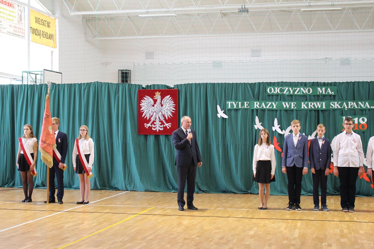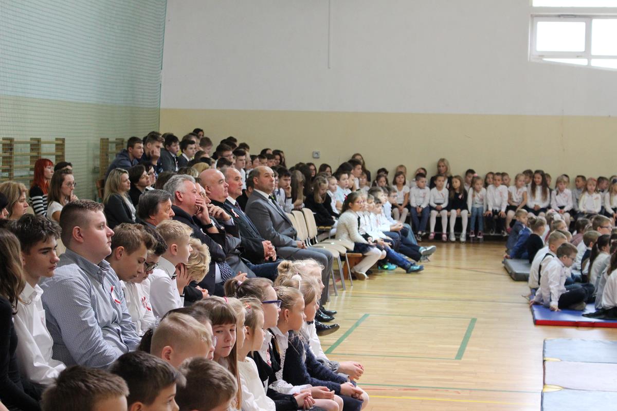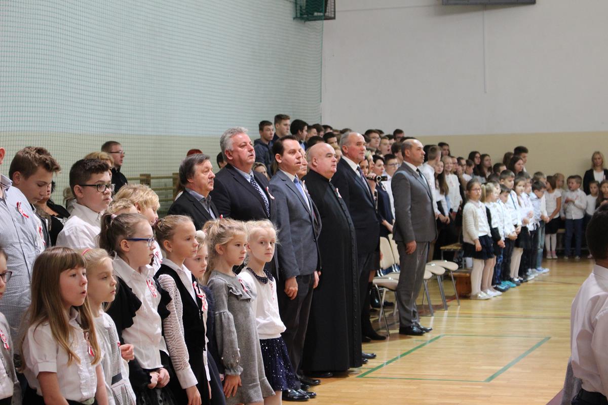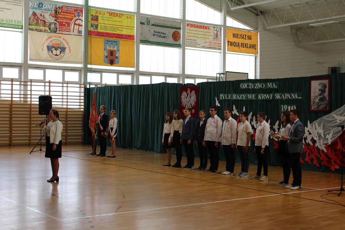 Szkolną uroczystość uświetniła obecność zaproszonych gości. Razem z nami świętowali niepodległość: wójt gminy Goszczyn – pan Sławomir Słabuszewski, wójt elekt gminy Goszczyn – pan Waldemar Kopczyński, wiceprzewodniczący Rady Powiatu – pan Michał Pruś oraz proboszcz parafii w Goszczynie – ksiądz Arkadiusz Wiktorowicz.